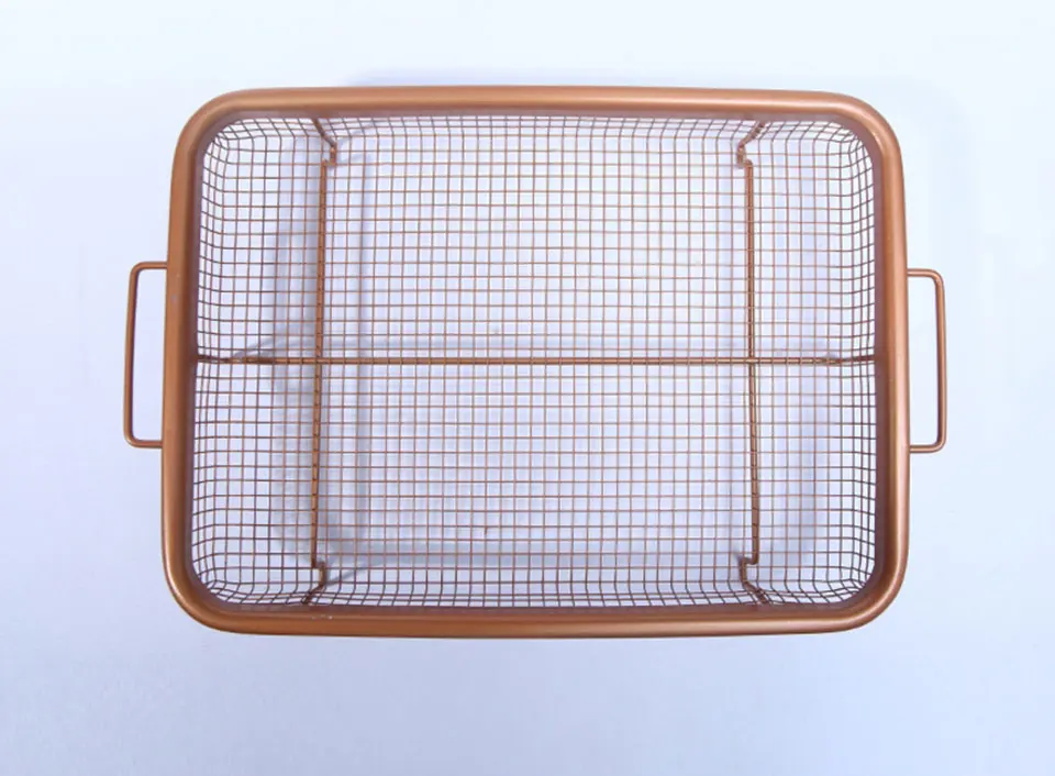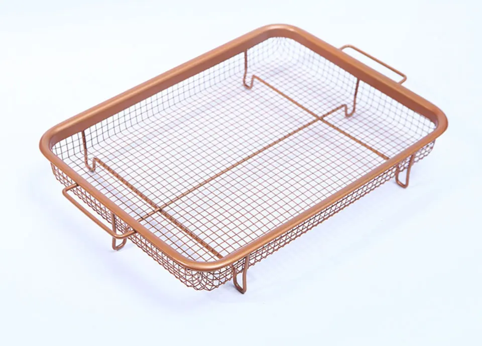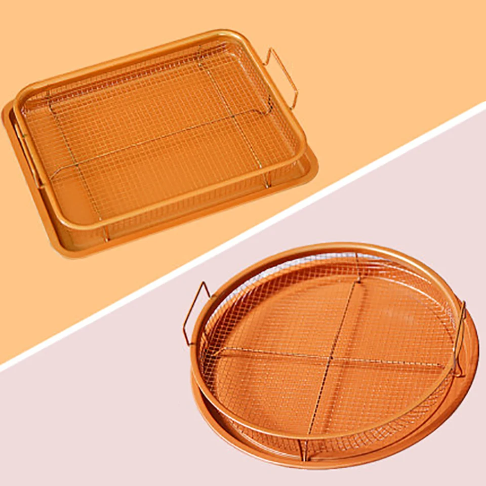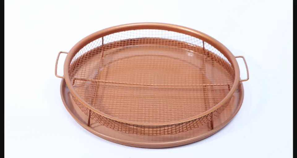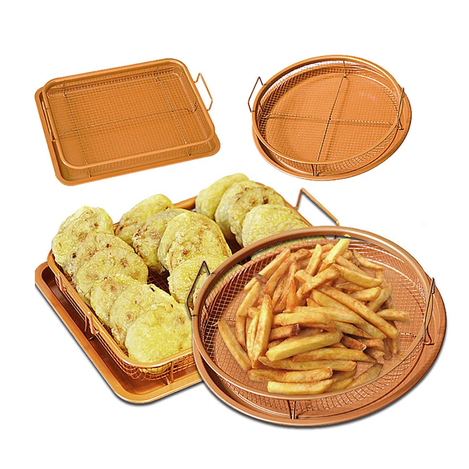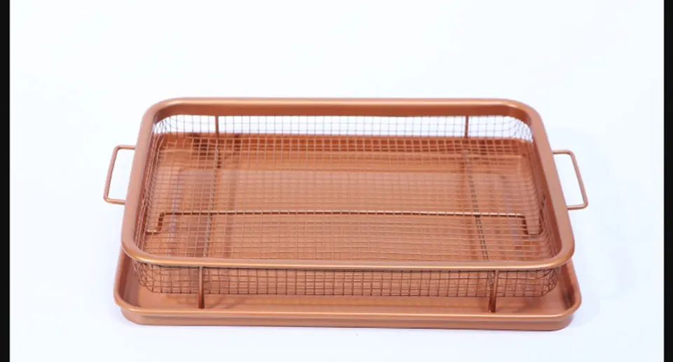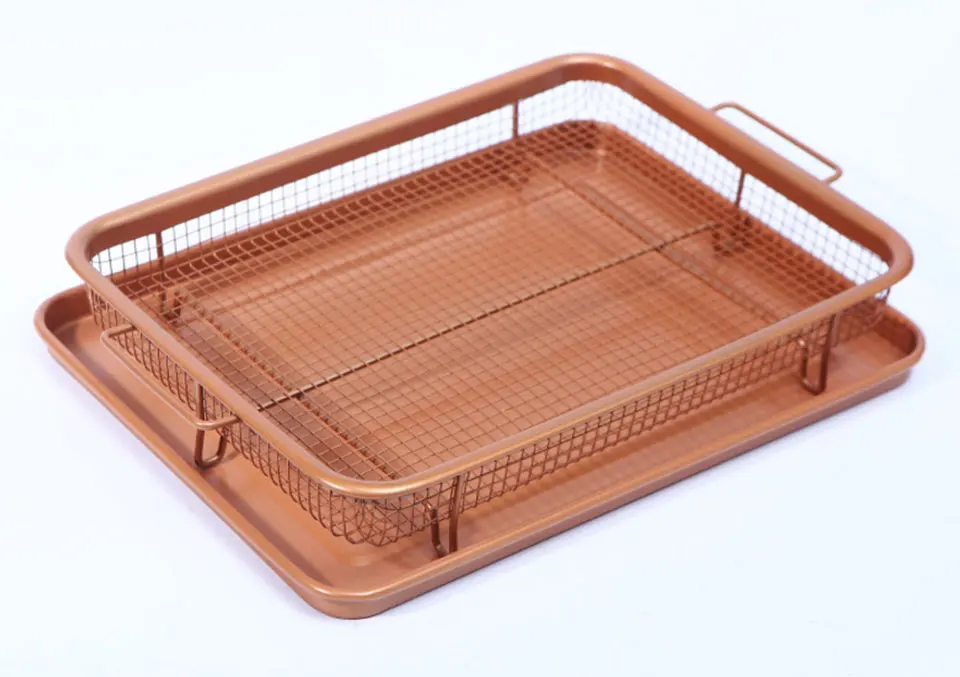 Готовьте с улыбкой, потому что готовка стала легче! Теперь вы можете печь, жарить и жарить любимые блюда каждый день с одним и тем же набором. Забудьте о повороте, листании и горении при готовке. Специальное Покрытие гарантирует отсутствие прилипания пищи к поверхности, а циркуляция воздуха уменьшает вероятность жжения пищи, она дает идеально хрустящие, золотисто-коричневые результаты. Выкиньте фольгу и пергамент, они вам больше не нужны. Этот удивительный кухонный инструмент очень легкий и подходит для любого вентилятора или газовой печи или под грилем.