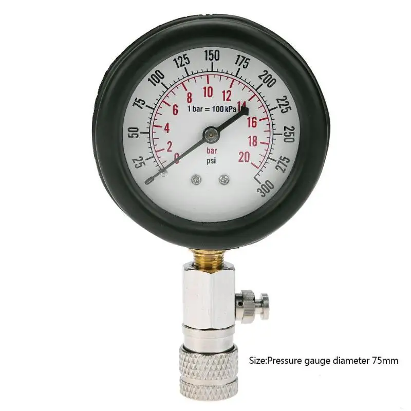 Этот тестер сжатия можно быстро установить на ваш велосипед/автомобиль, затем вы можете получить точные показания на клапане, поршневом кольце, отверстии цилиндра или прокладке головки.