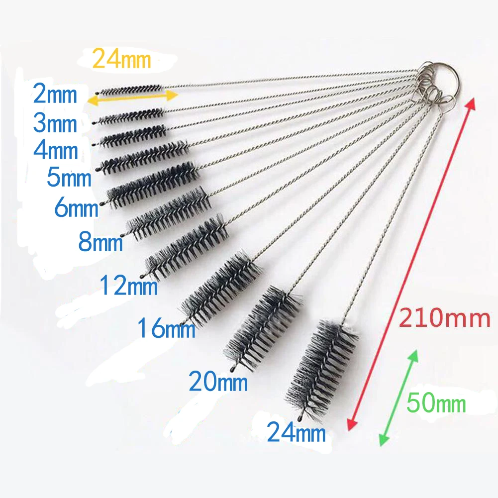 10 шт из нержавеющей стали Очиститель Щетка пробирка бутылки соломы моющий инструмент Легко попасть в труднодоступную область, удобная чистка Высококачественная нержавеющая сталь, прочная в использовании Кол-во: 10 шт./компл. Цвет: черный/белый (как показано на фотографии) Материал: нержавеющая сталь + нейлоновые щетинки Длина: прибл. 22 см Диаметры: 2 мм, 3 мм, 4 мм, 5 мм, 6 мм, 8 мм, 12 мм, 16 мм, 20 мм 24 мм