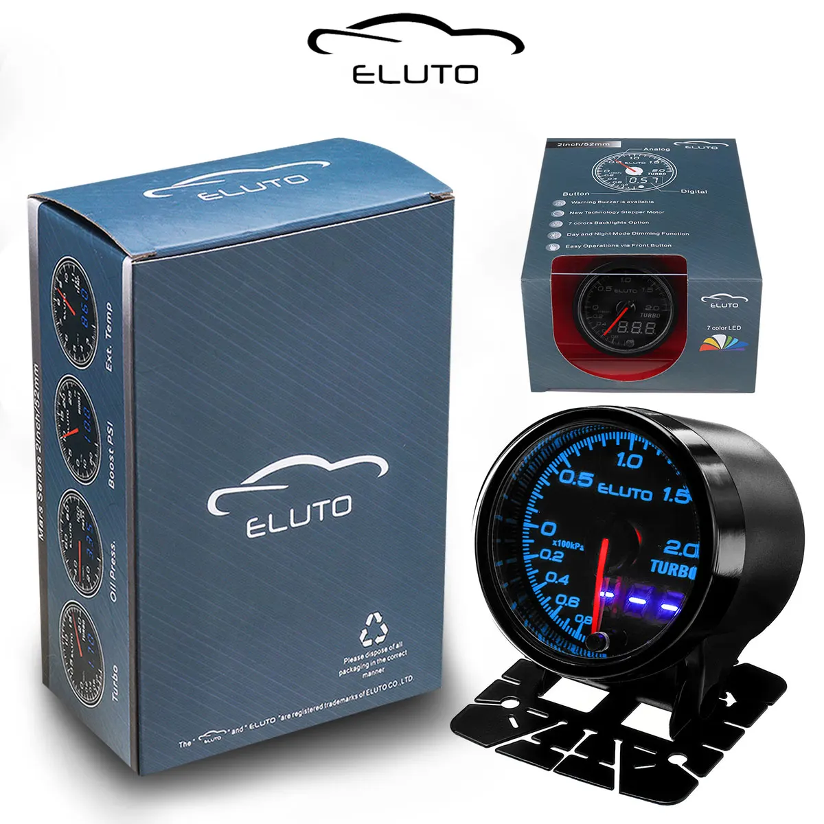 Eluto 12 В 2 "52 мм турбонаддув манометр вакуумный пресс-метр-1 ~ 2 бар 10 цветов светодиодный черный Лен