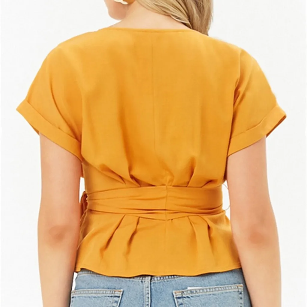 Изысканная новая одежда, футболка, Женская однотонная свободная желтая рубашка с круглым вырезом, хит продаж, милая темпераментная футболка для девочек, новинка
