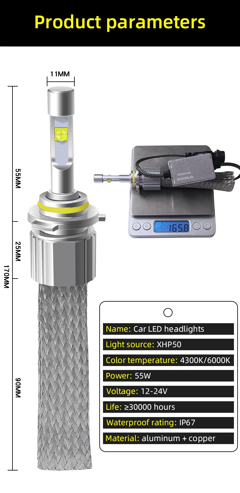 Оригинальные светодиодные чипы XHP50 с линзами для автомобильных светодиодных фар Спецификация: