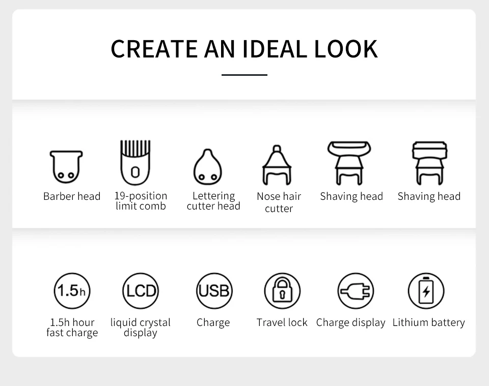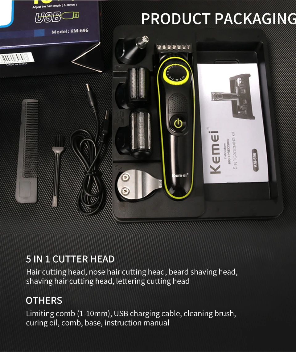 Kemei 5 в 1 триммер для волос, электрическая машинка для стрижки волос, Мужская бритва для бороды, беспроводная стрижка, многофункциональная бритва, триммер для волос в носу, 696