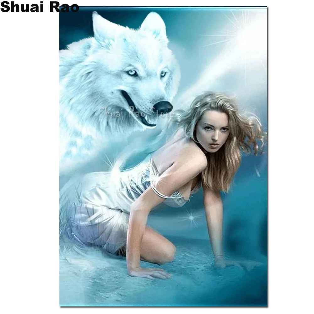Полная дрель квадратная круглая Алмазная картина Мозаика Белый Волк и красота Алмазная вышивка с животными из стразов крестиком Декор