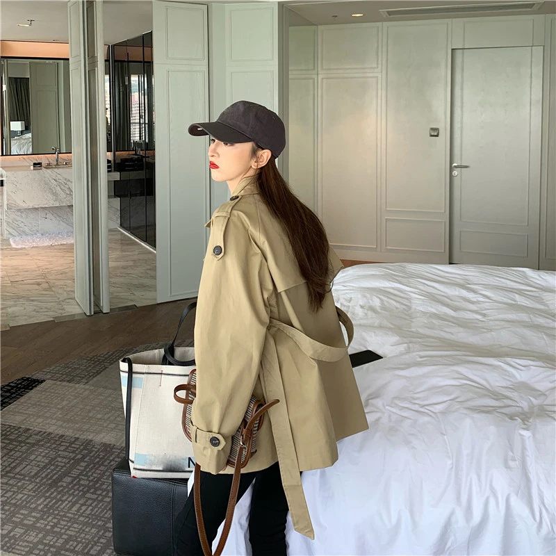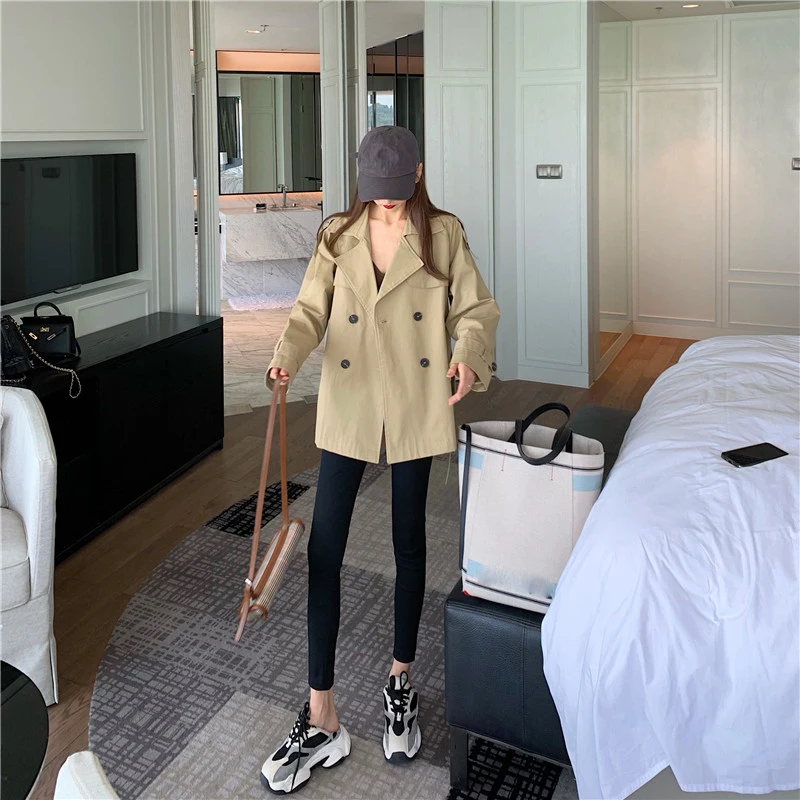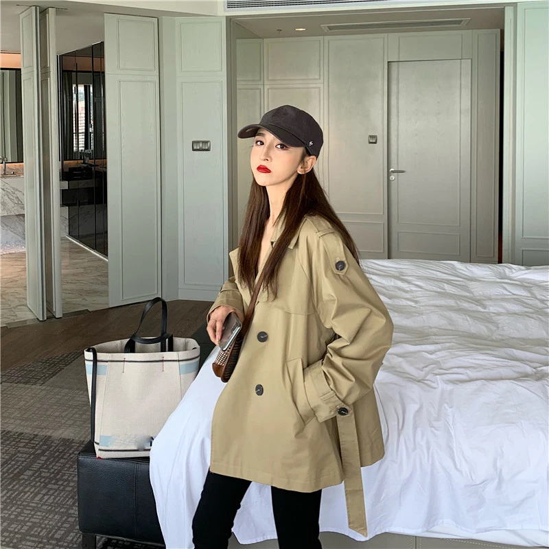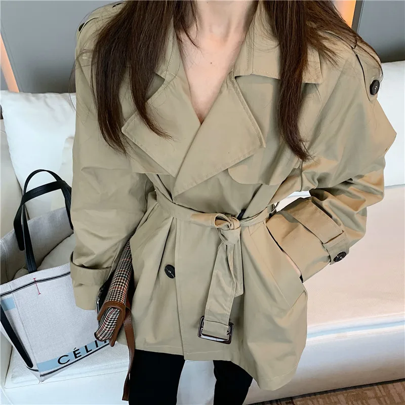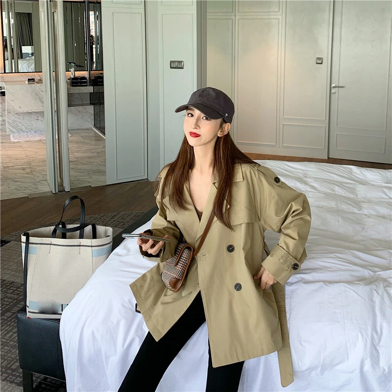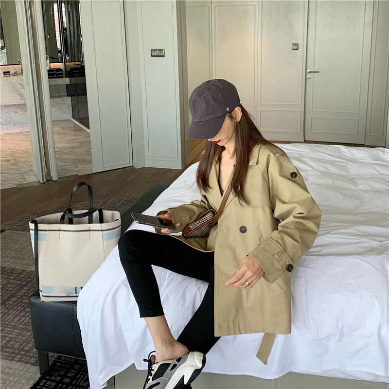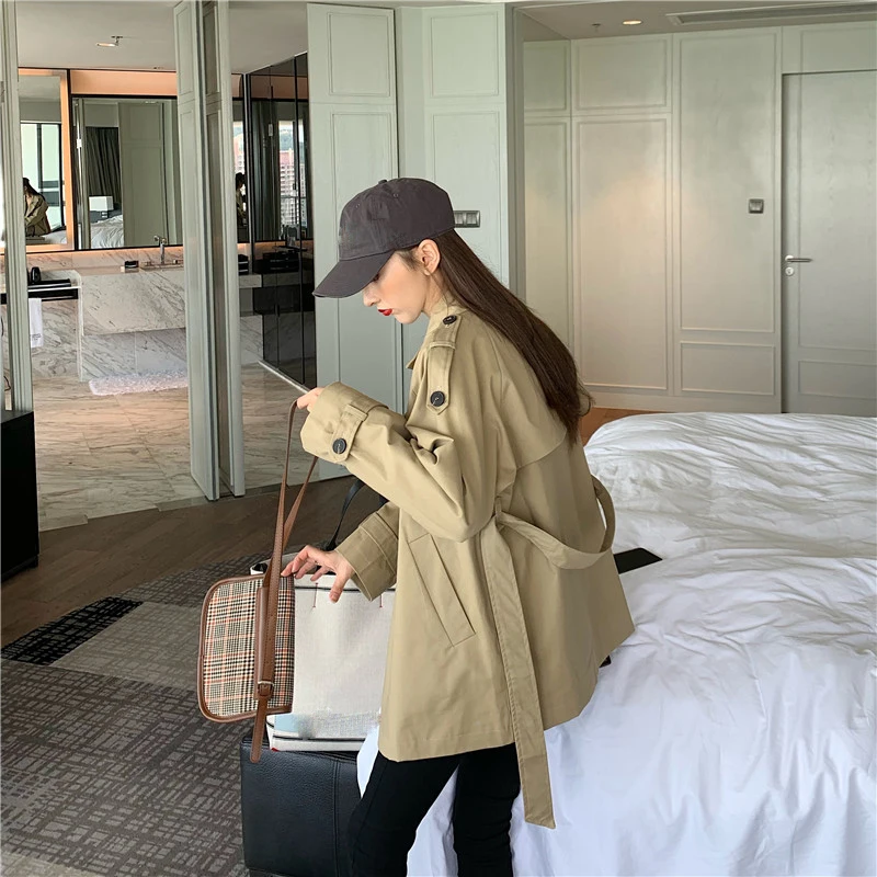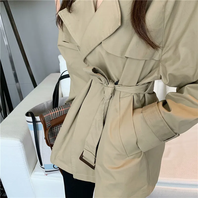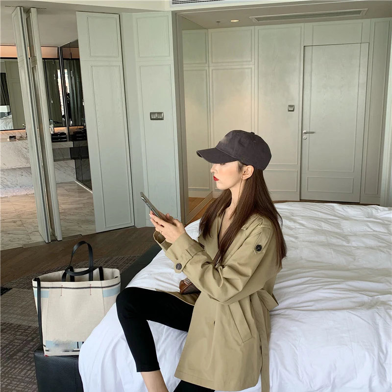 Элегантный осенний Женский Тренч цвета хаки облегающая Классическая ветровка