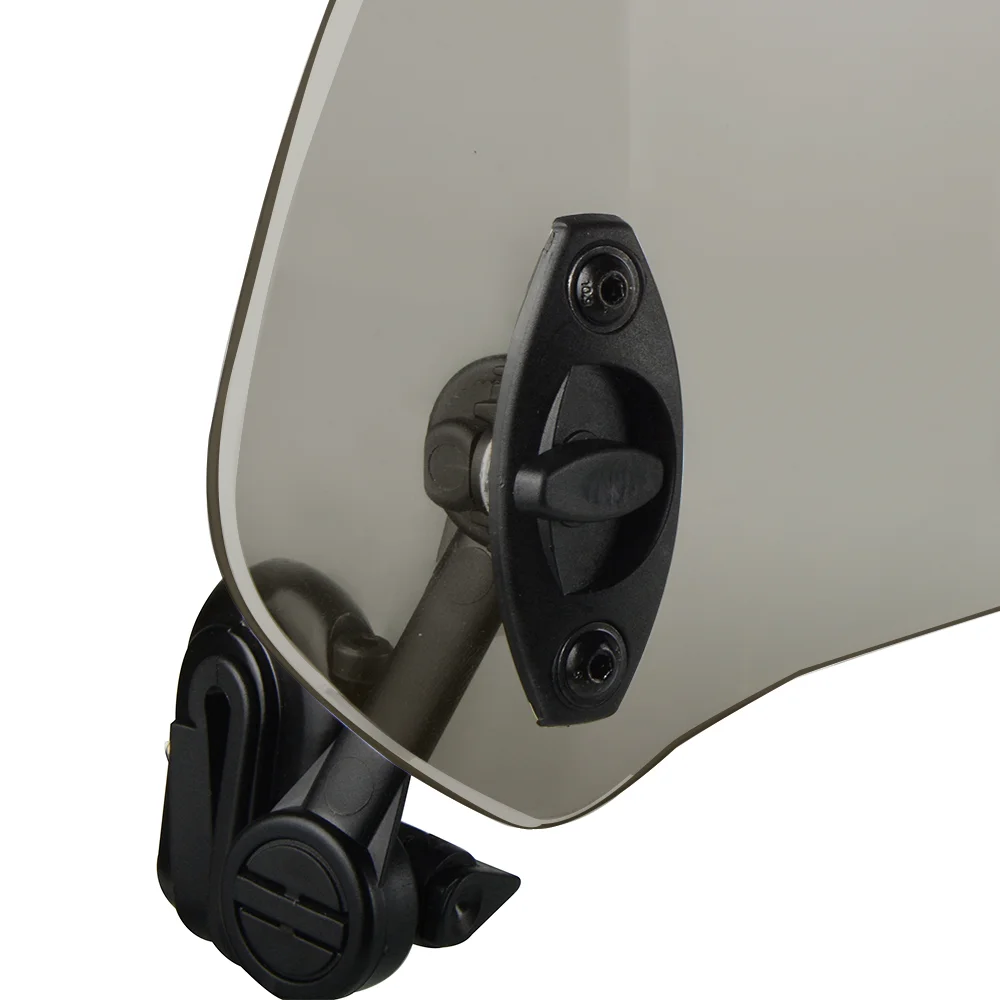 Регулируемое лобовое стекло, закрепленное выше оригинального лобового стекла, повышает безопасность головы.