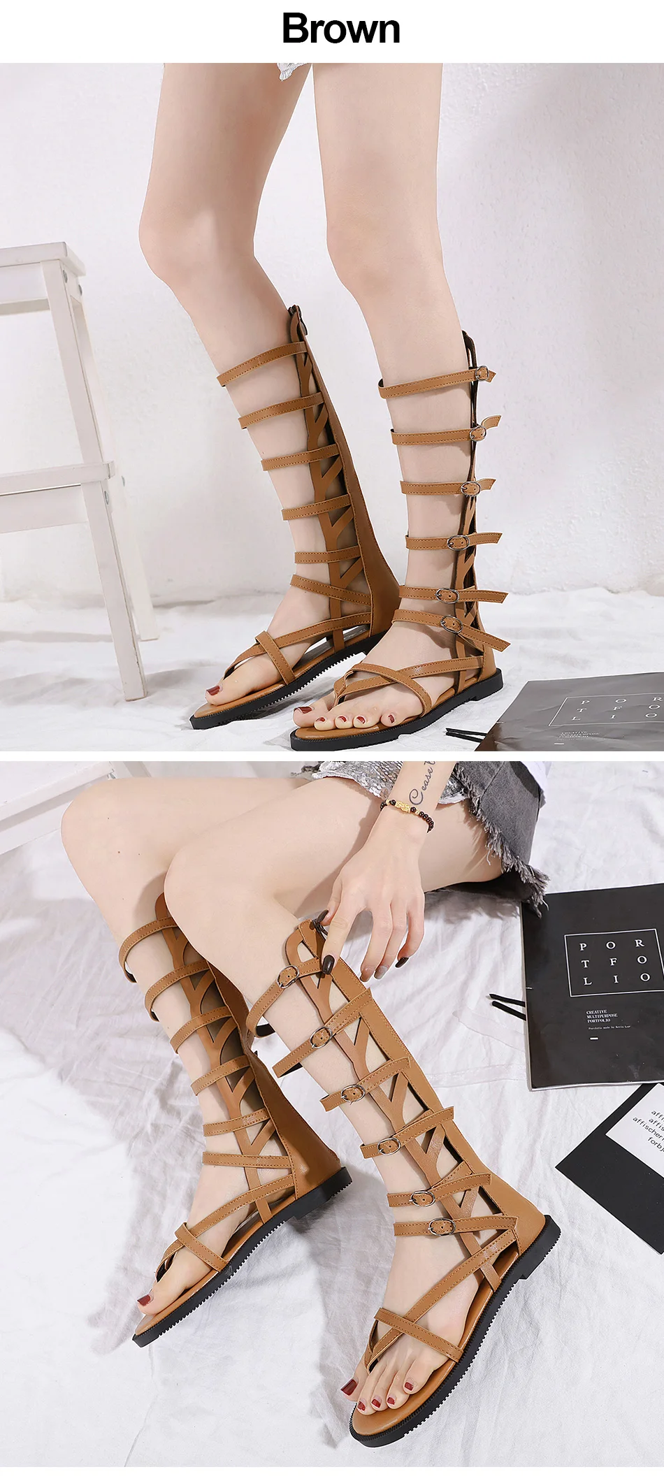 Сандалии-гладиаторы для женщин черные кожаные римские