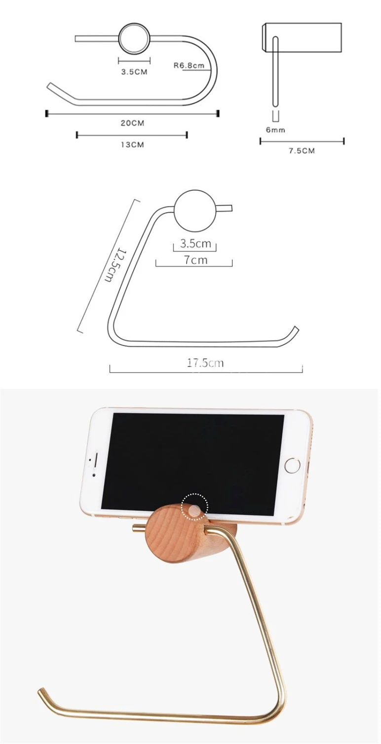 Этот держатель для туалетной бумаги изготовлен из дерева и латуни.