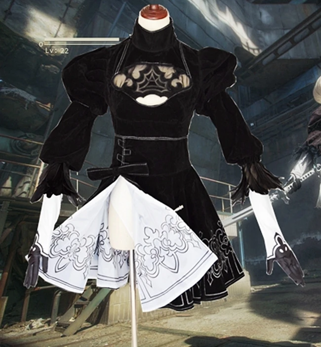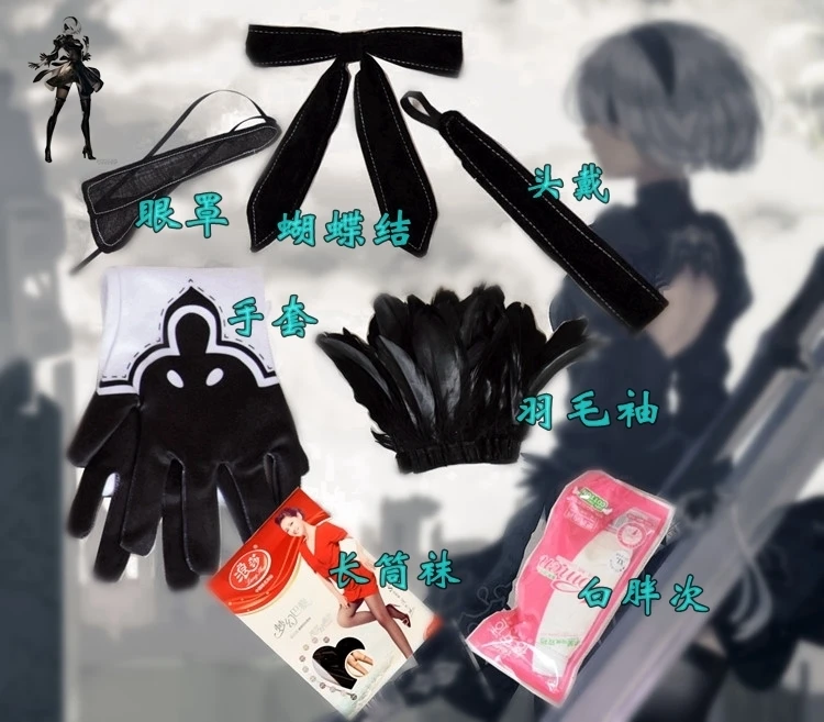 Полный комплект включает:Платье, маска для глаз, перчатки, белое нижнее белье, чулки, рукава с куриными перьями, головной убор с бантом+ Парик + сетка для волос + ботинки