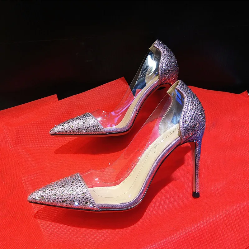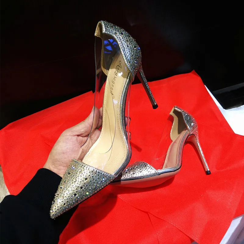 Pumps Women Transparent High Heels Party Shoes Women Crystal Sexy Buty Damskie Spring Ladies Shoes Zapatos De Mujer Large Size