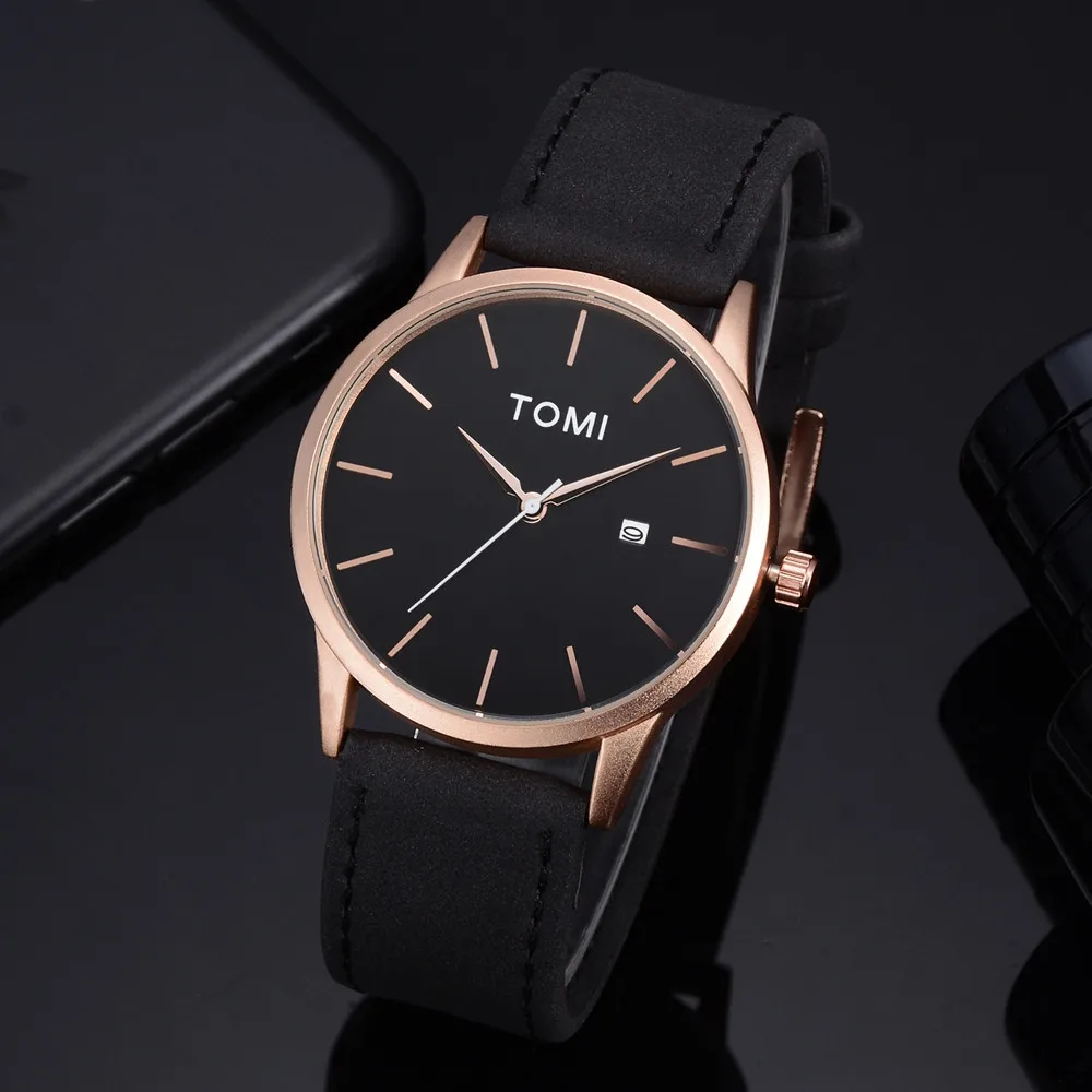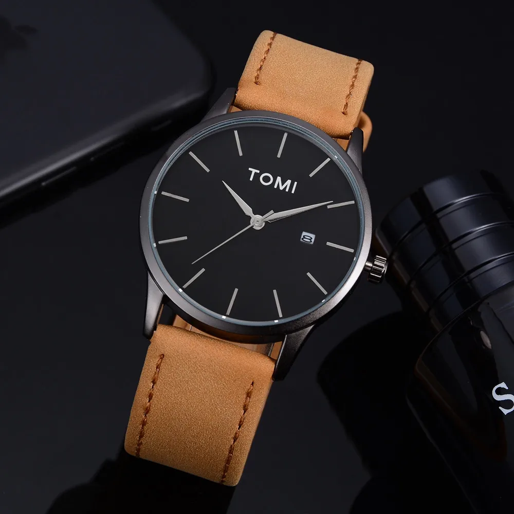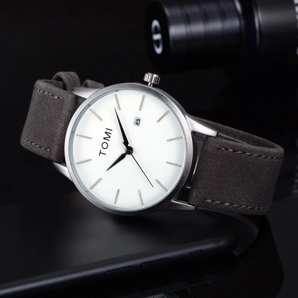 Мужские Бизнес Ретро дизайн кожаный круглый ремешок часы