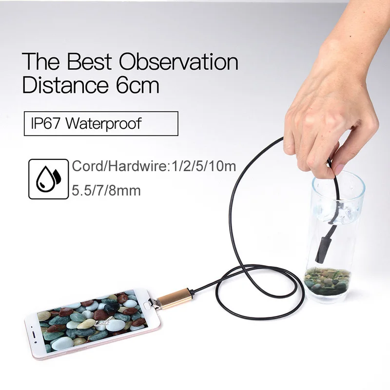 -- Водонепроницаемый IP67 -- легко исследовать недоступные или трудновидимые области, такие как подводная труба, двигатель автомобиля и так далее.