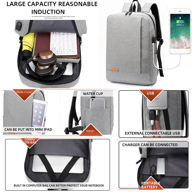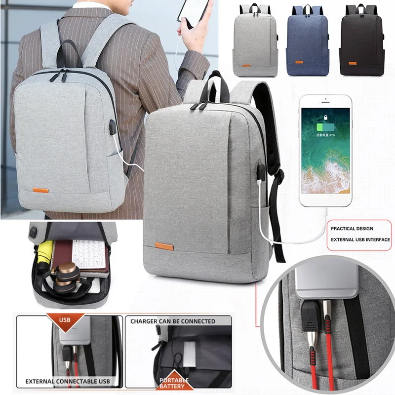 Мужской деловой рюкзак с usb зарядкой и защитой от кражи черный для ноутбука 15 6