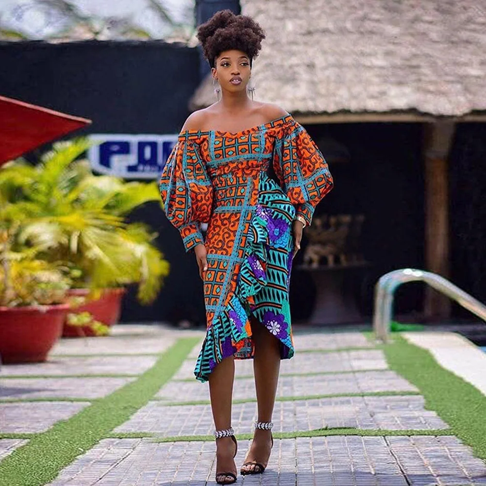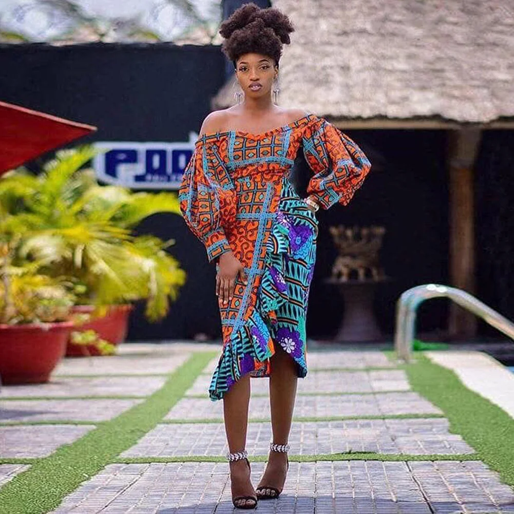Это Африканское миди-платье на молнии с открытыми плечами прекрасно выразит вашу индивидуальность!