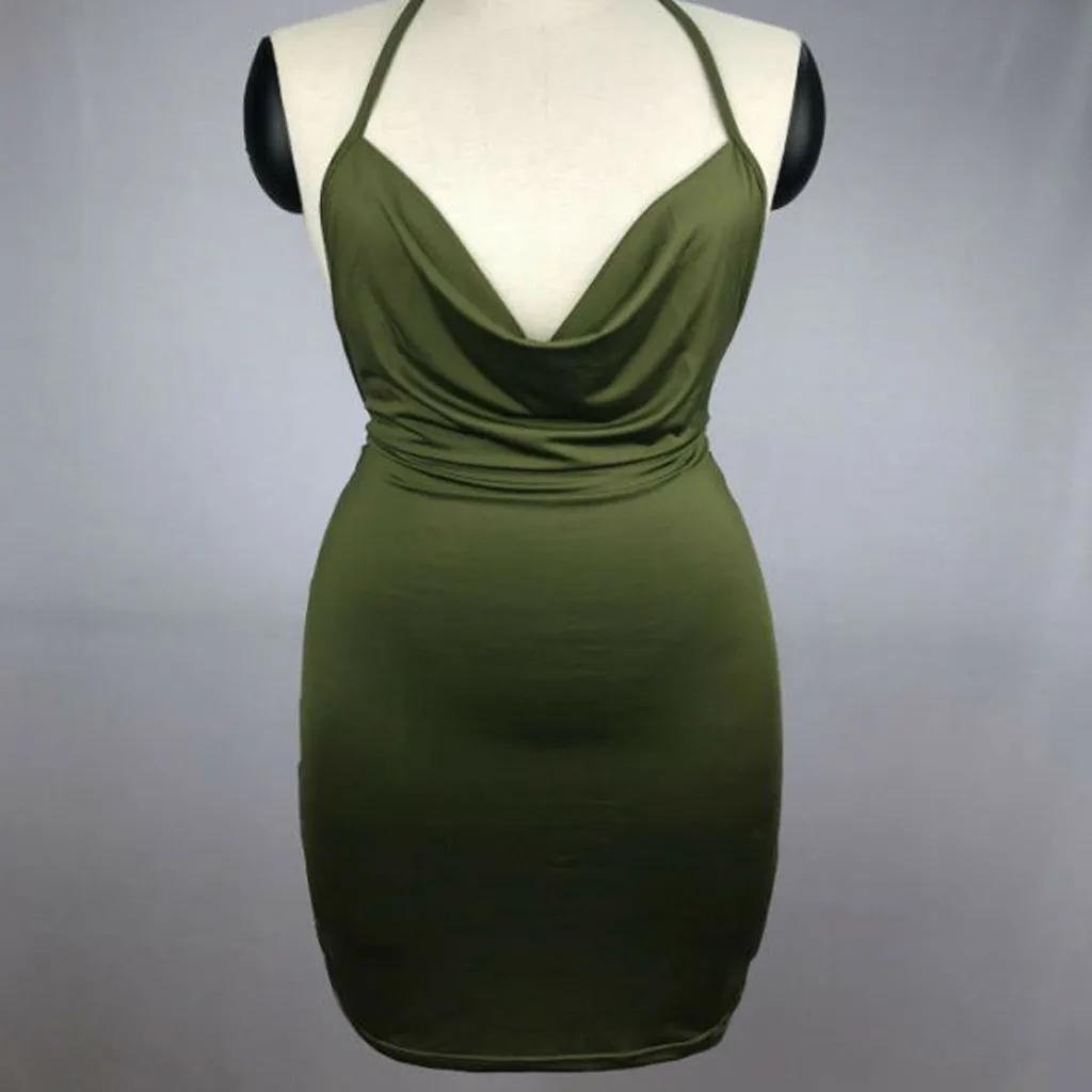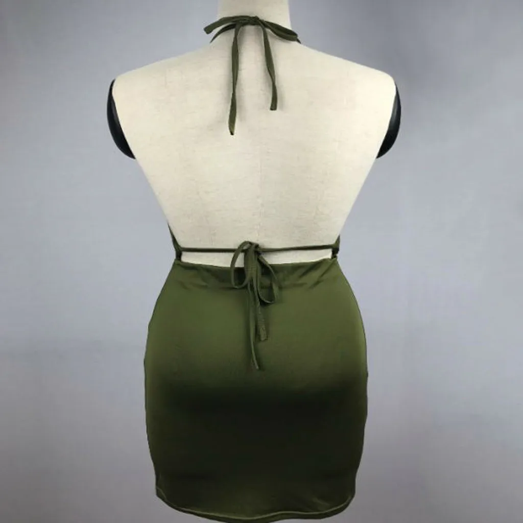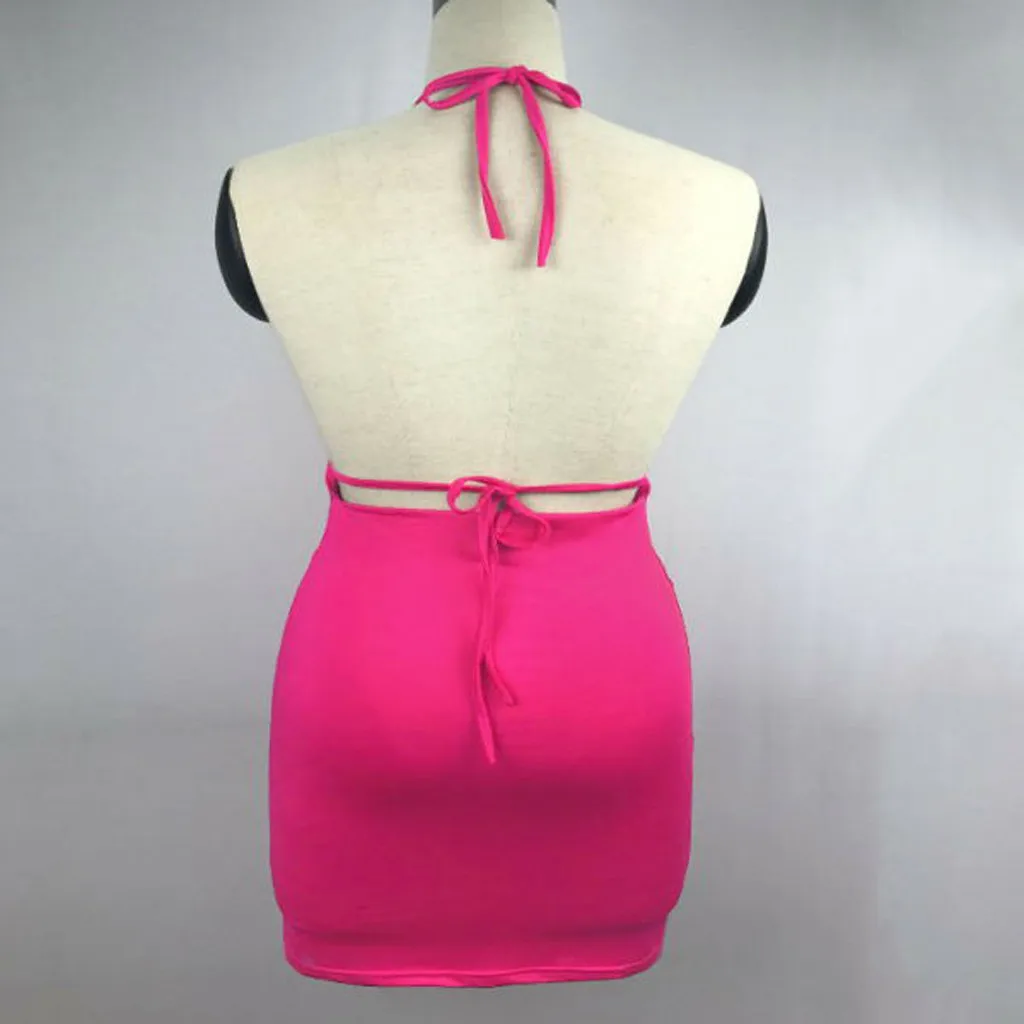 Сексуальный женский камзол без рукавов Низкий вырез чистый цвет спинки ягодицы мини-платье