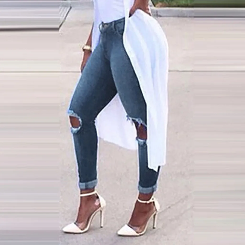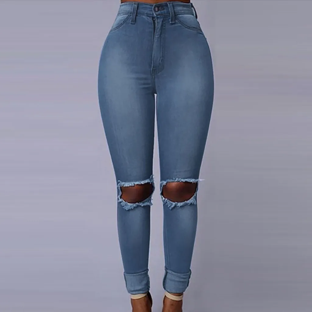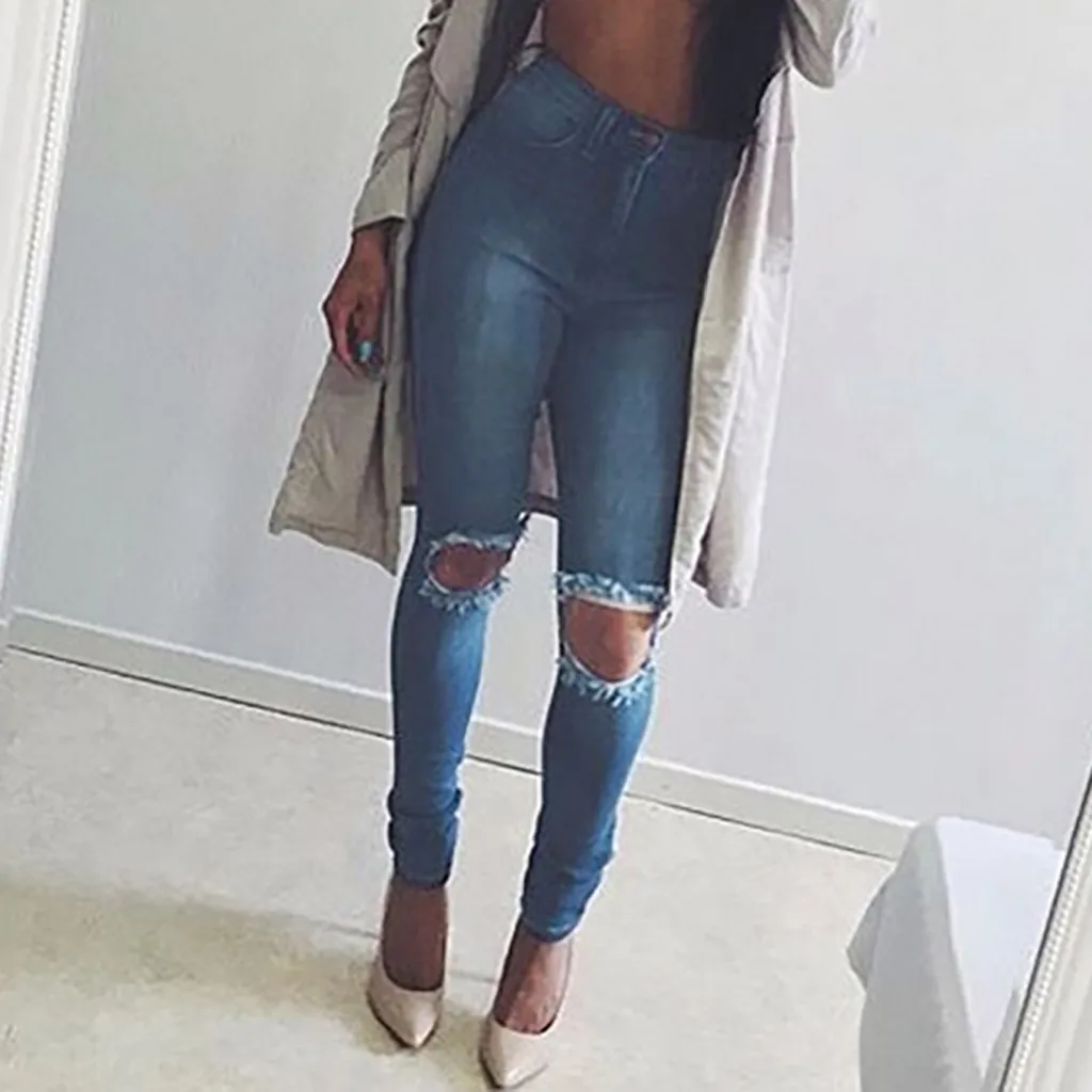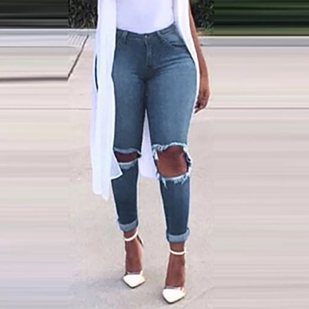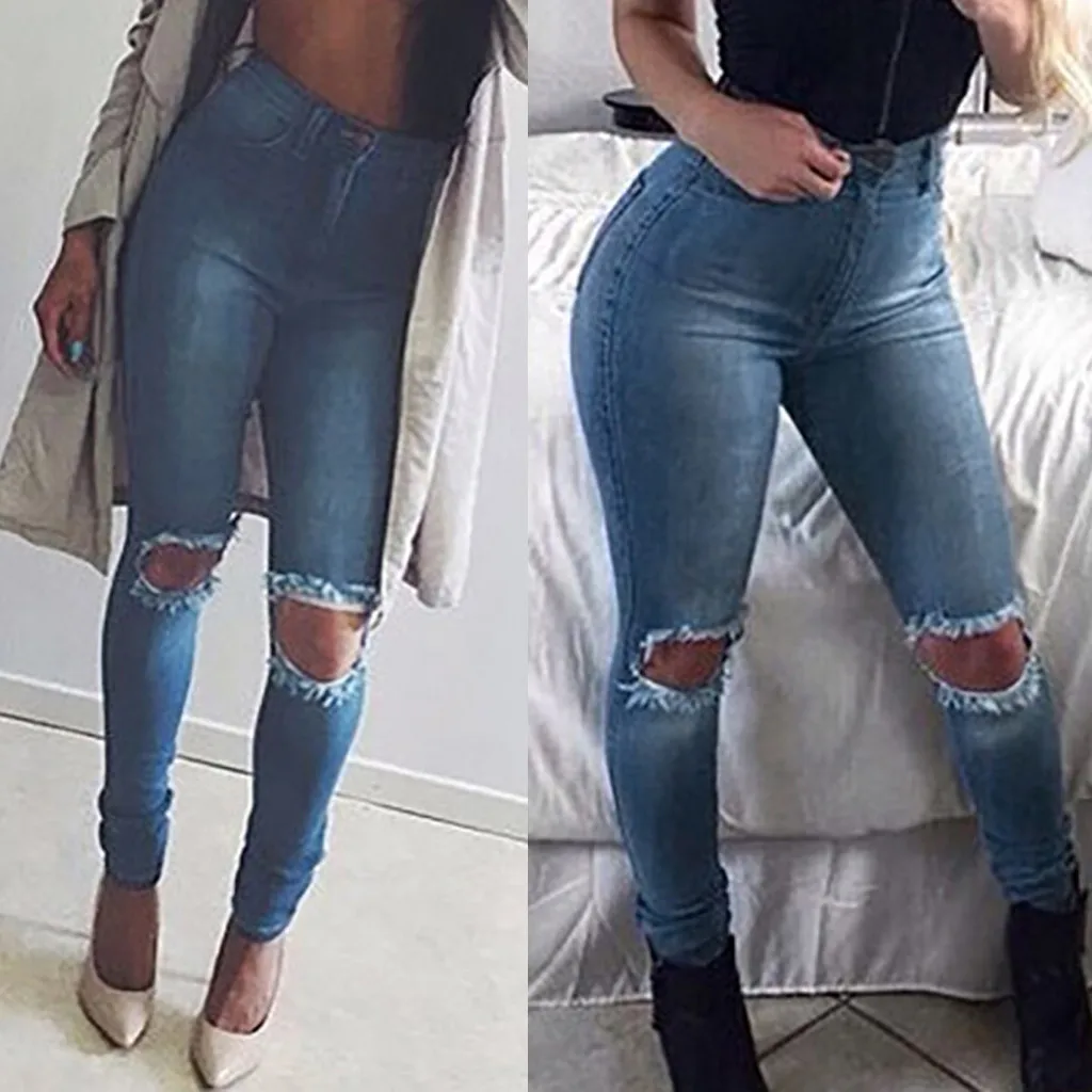 3. Стиль: модный и повседневныйВысокаяОбхват талииОтверстие Джинсовая тканьБрюки для девочек,