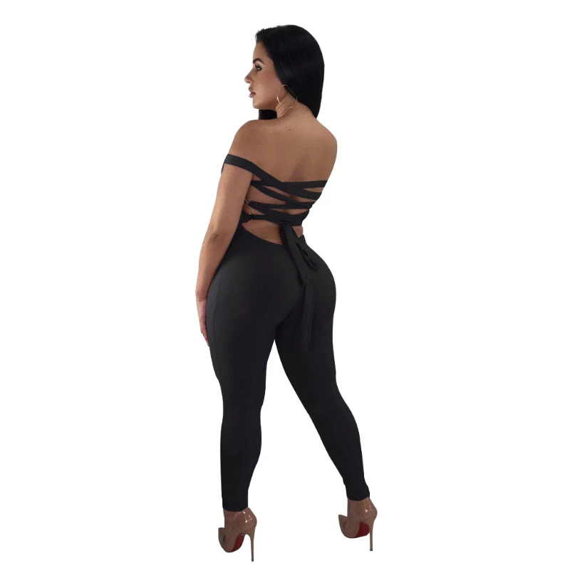 Сексуальный бандажный комбинезон с открытой спиной, трико, женские комбинезоны для женщин 2020, комбинезоны размера плюс, черный цельный комбинезон DC377 <