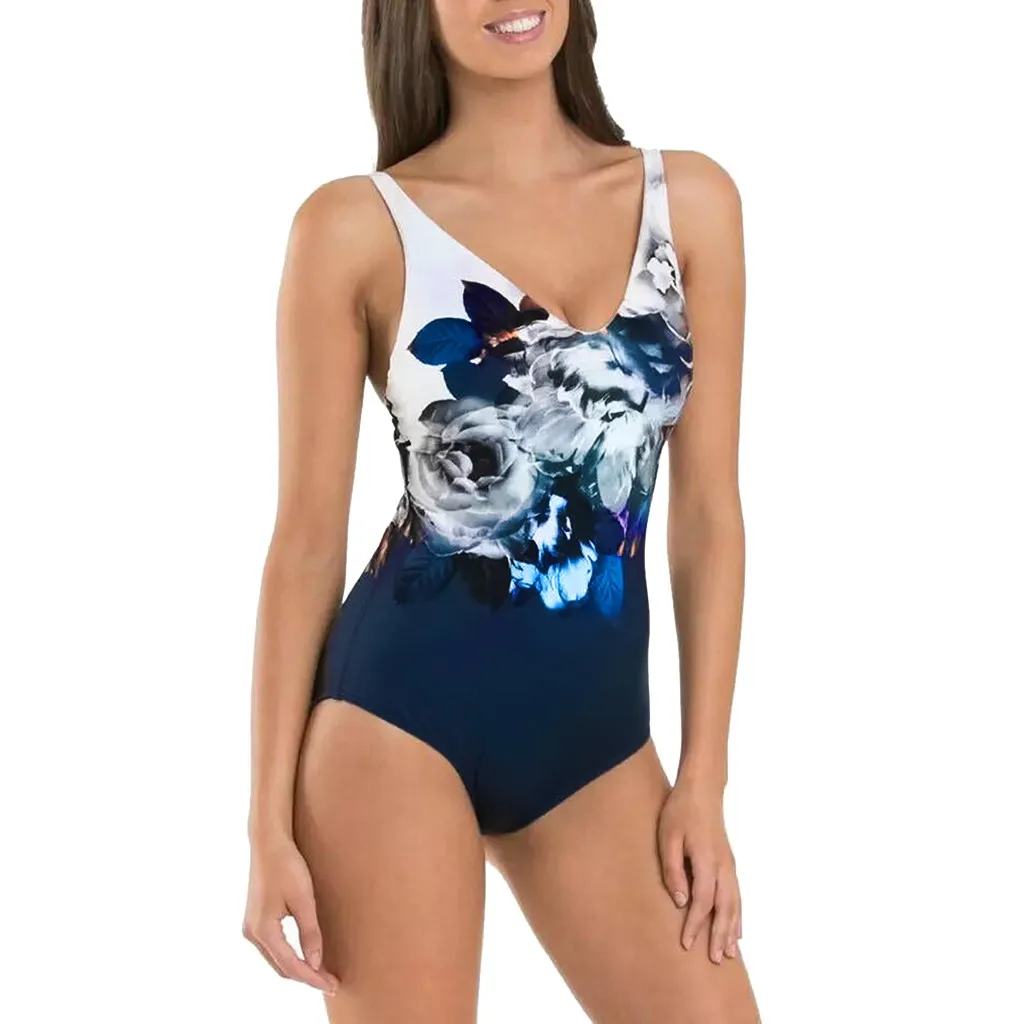 Женский купальник без рукавов с цветочным принтом, женский купальник бикини, пляжный цельный купальник