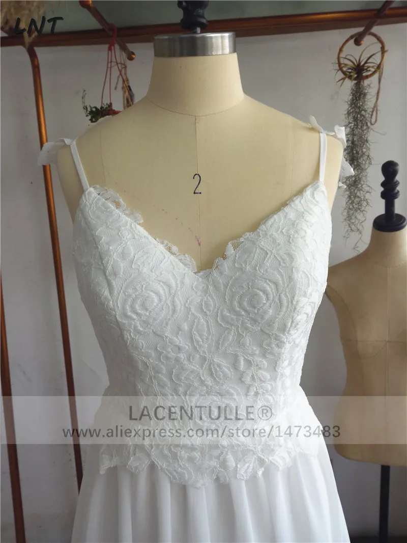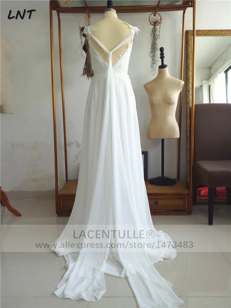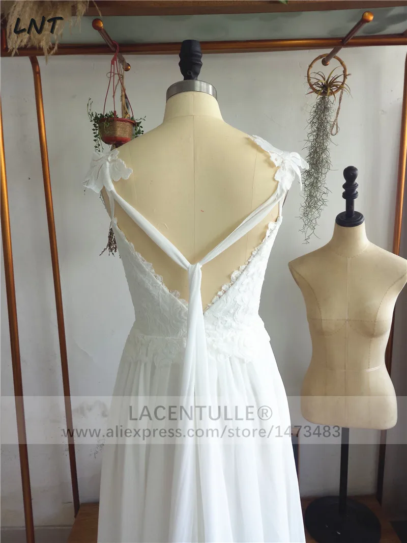 Кружевное шифоновое свадебное платье с v-образным вырезом