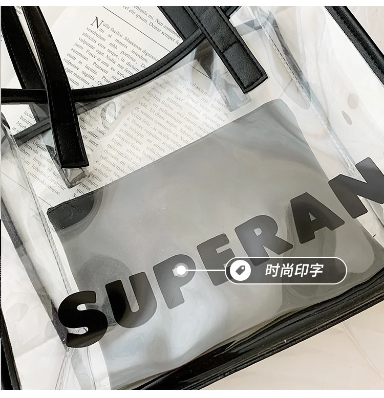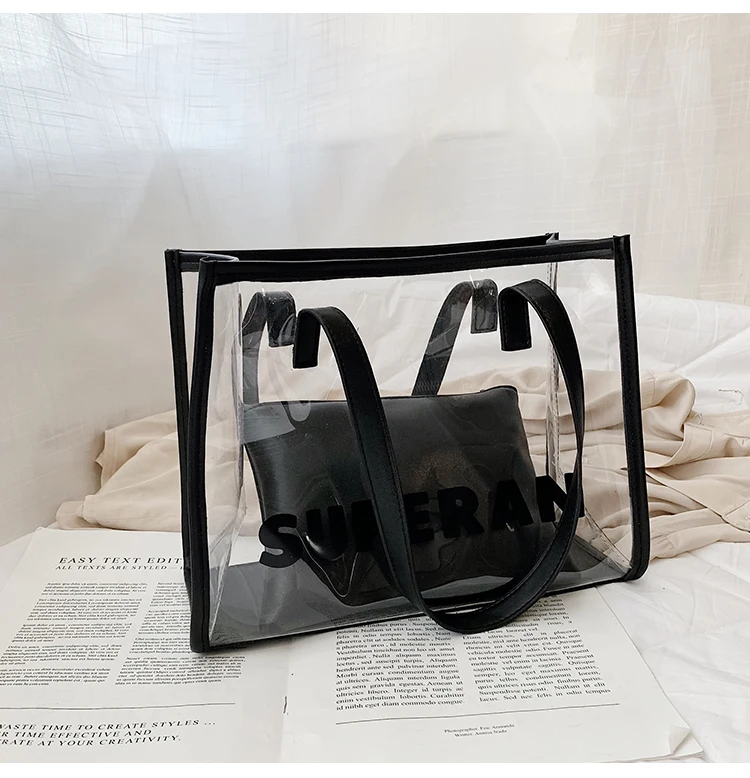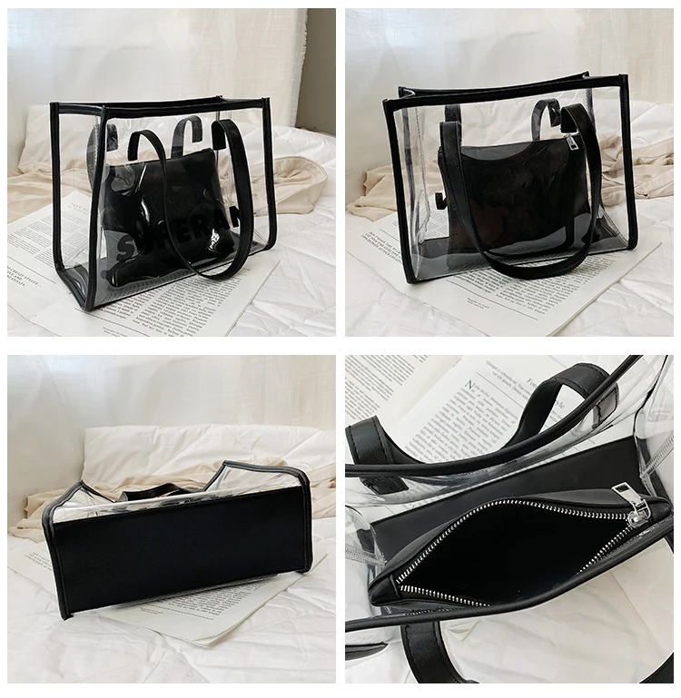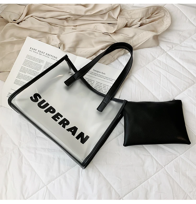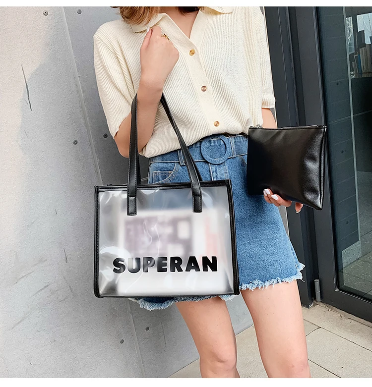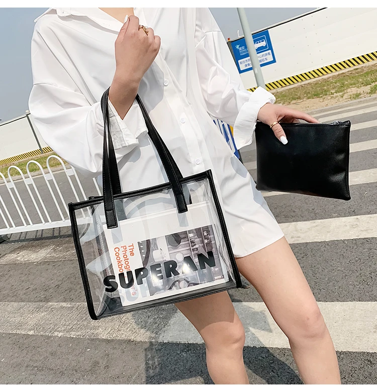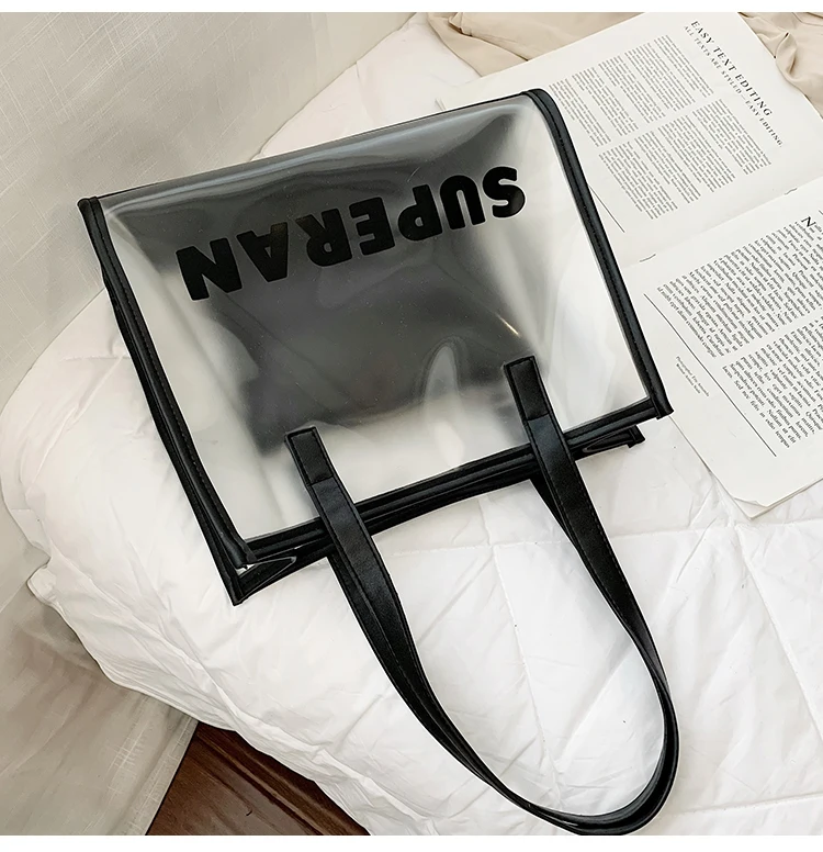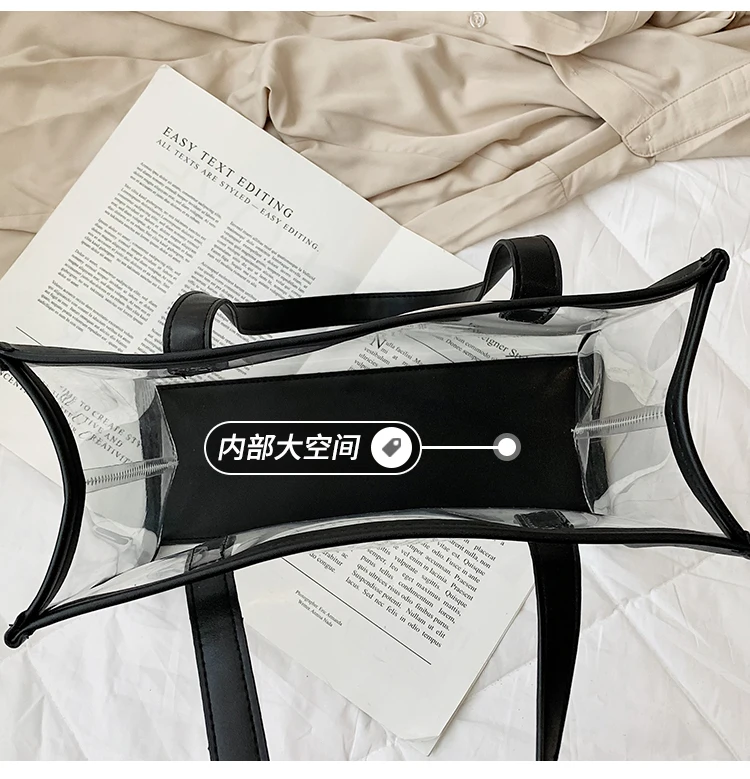 Модная прозрачная сумка из ПВХ, большая женская сумка-тоут, черная женская сумка, Сумки из искусственной кожи, сумка на плечо, размер сумки 30*24*13 см