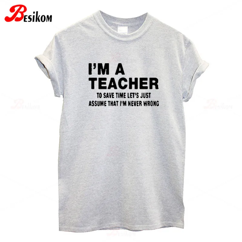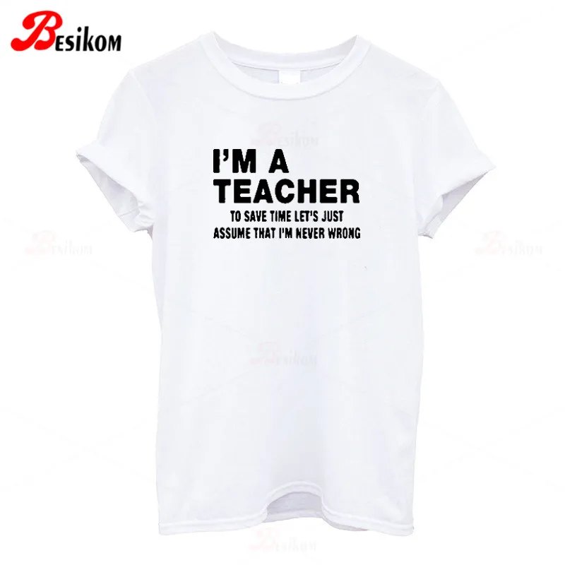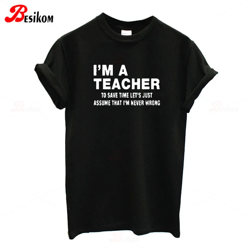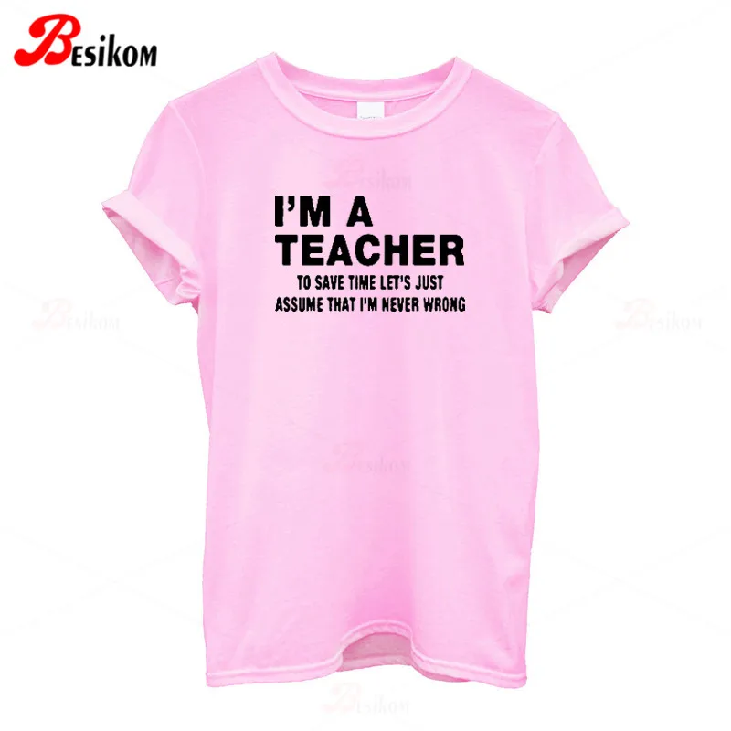 Женские хлопковые футболки Besikom I'm A Teacher с буквенным принтом винного цвета