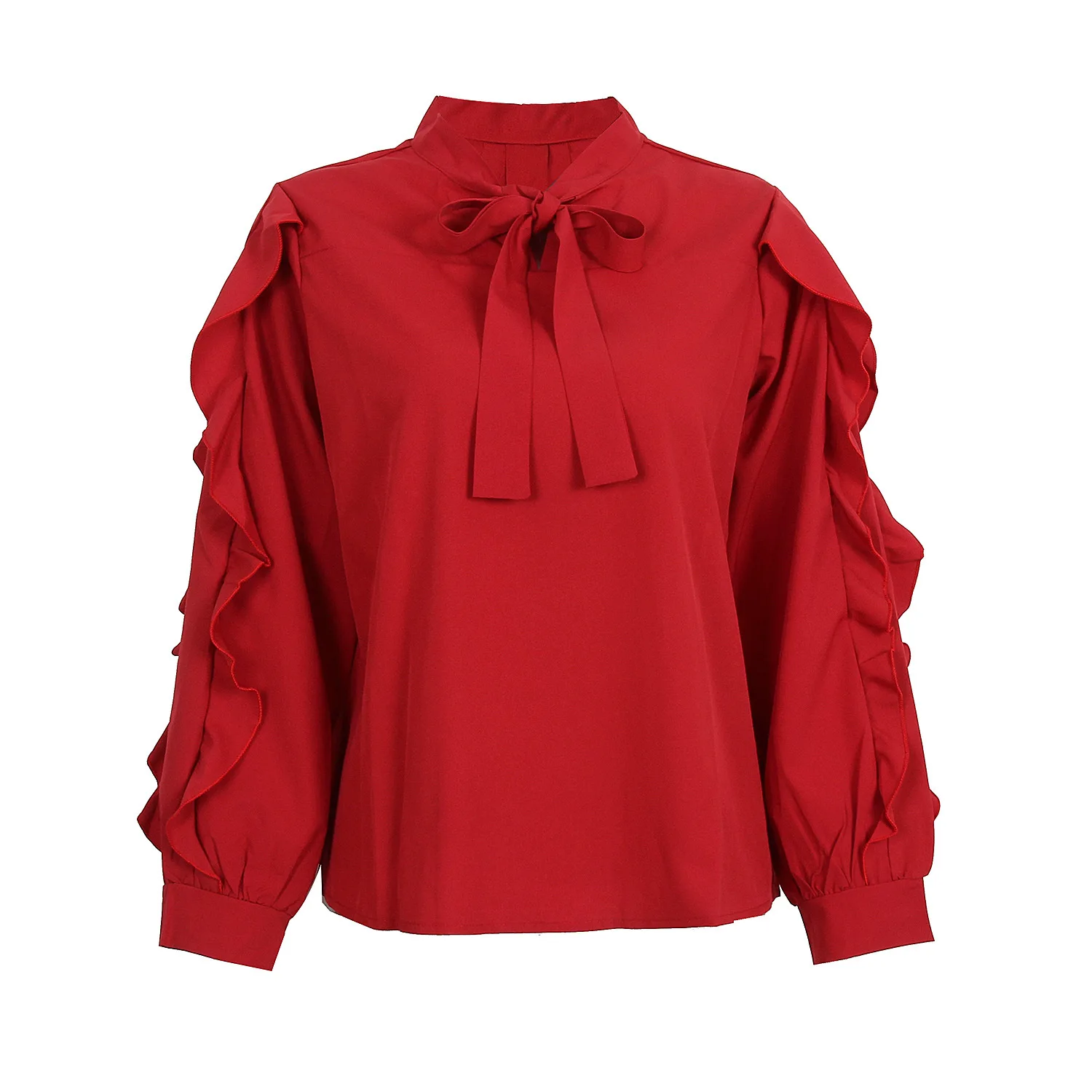Ttle: INGOO элегантная шифоновая блузка с бантом и оборками, Повседневная винтажная офисная Дамская кофта, модные красные, черные весенние однотонные женские блузки с длинным рукавом