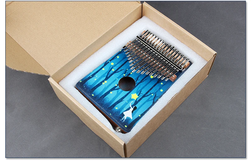 Посылка включает в себя: 1 x калимба 1 x тюнер молоток 1 x обучающий книга 1 x сумка 2 x Стикеры 1 х кабель Салфетка для протирки (1 шт.)