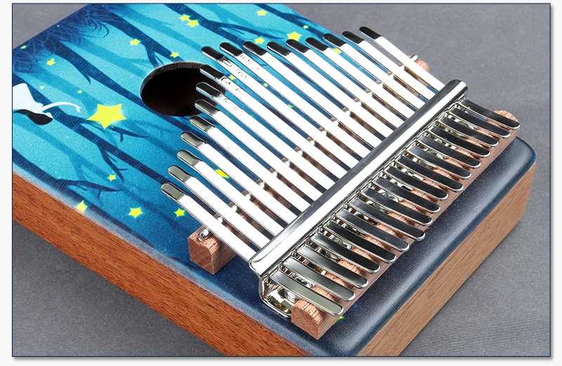 Описание: 1. Тип изделия: калимба 2. Стиль: 17key EQ kalimba 3. Цвет: синий 4. Материал: красное дерево 5. Ключ: минеральная сталь