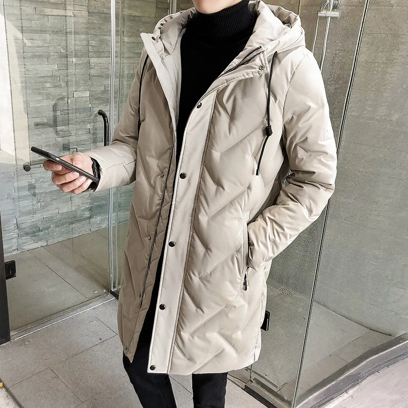 Модный мужской зимний пуховик средней и длинной длины, мужское теплое пальто с капюшоном, белый пуховик на утином пуху, мужские пуховики высокого качества