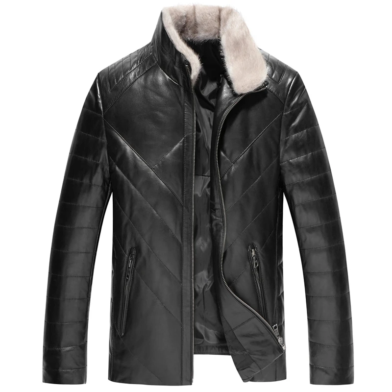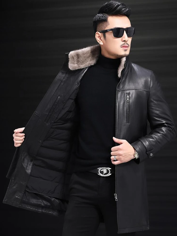 Мужской пуховик из натуральной кожи, зимнее пальто из овечьей кожи с воротником-стойкой из норки, мужская кожаная куртка на белом утином пуху, 5XL