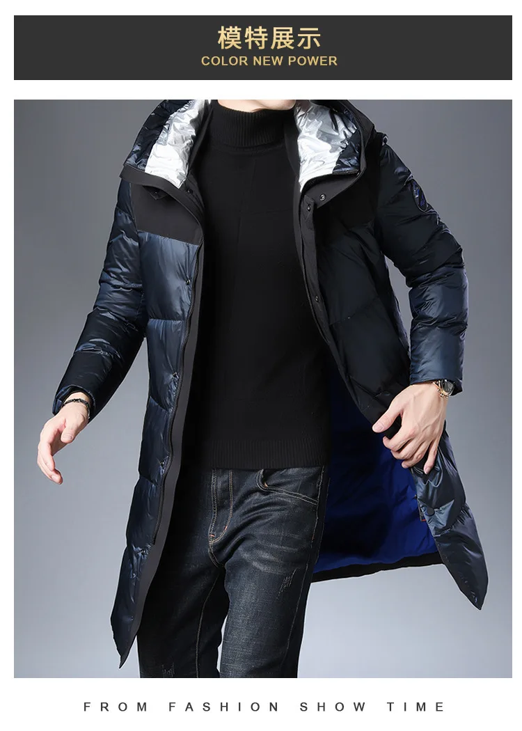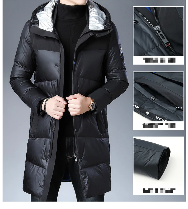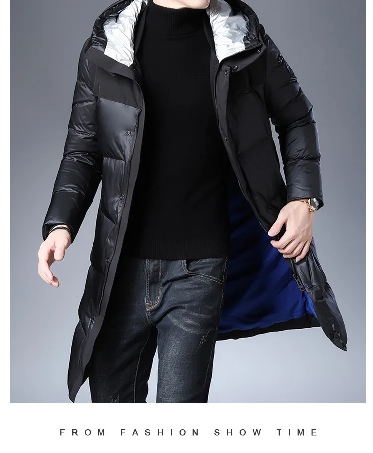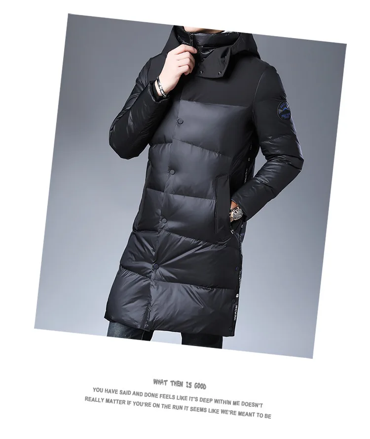 Высококачественный пуховик мужской 2019 новый стиль зимняя мужская длинная деловая Повседневная Теплая мужская куртка с капюшоном 90% белый утиный пух