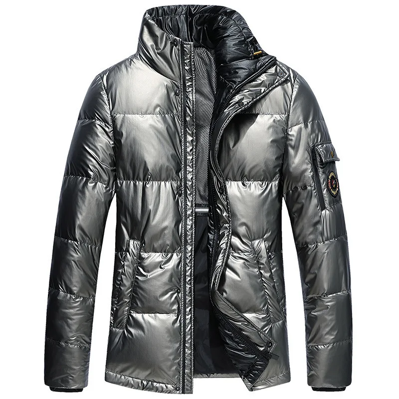 Яркий пуховик для мужчин, зима 2019, 90% белый пуховик на утином пуху, Мужское пальто с воротником-стойкой для отдыха