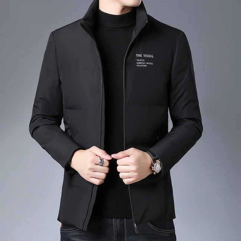 Высококачественная Мужская Зимняя парка на белом утином пуху, Толстая теплая верхняя одежда, мужское пуховое пальто, мужской пуховик с стоячим воротником