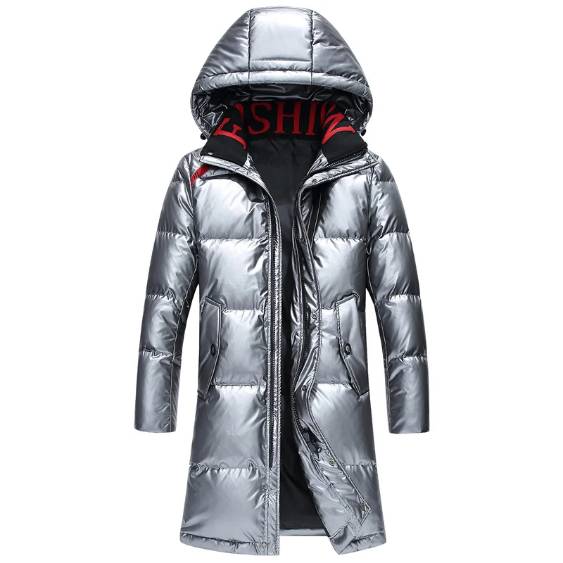 Высококачественная Мужская Зимняя парка на белом утином пуху, Толстая теплая верхняя одежда с капюшоном, черное глянцевое мужское пуховое пальто, мужской пуховик