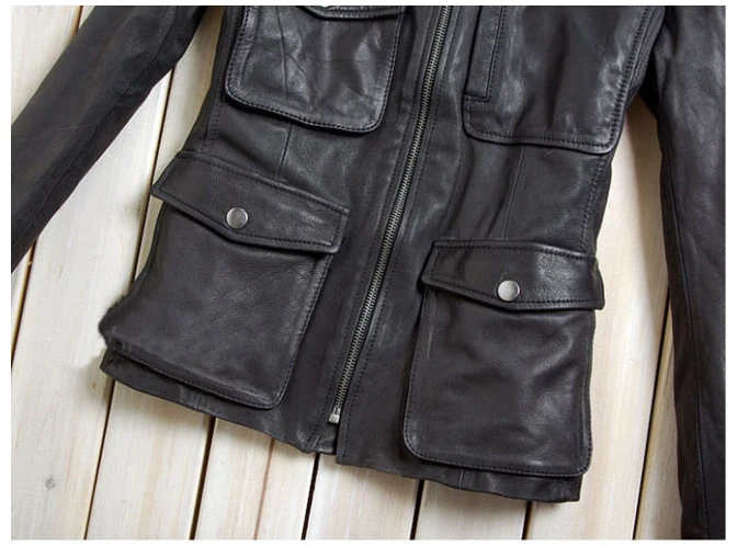 Женская куртка из натуральной козьей кожи, Черная мягкая облегающая куртка из 100% натуральной козьей кожи с несколькими карманами, весна-осень