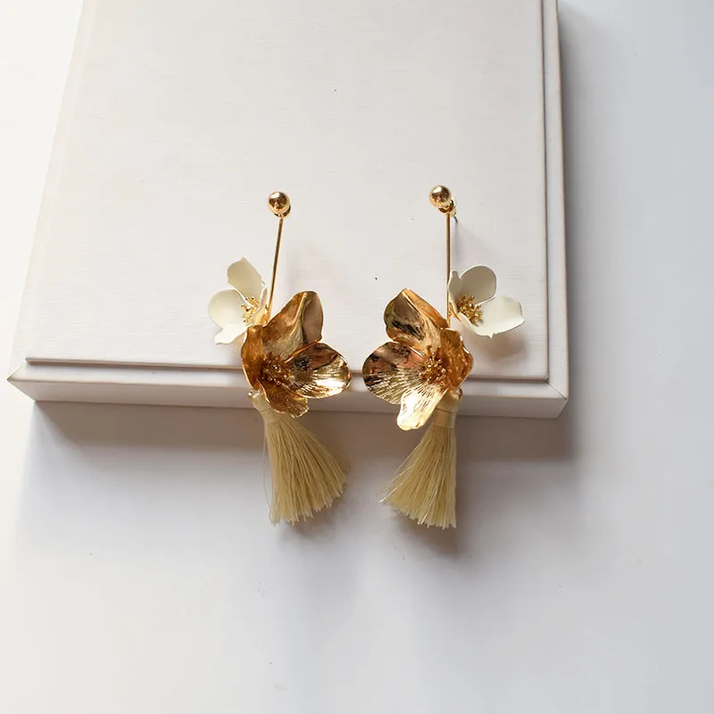 Женские винтажные серьги с металлическим цветком wing yuk tak, корейские висячие серьги в летнем стиле, вечерние ювелирные изделия
