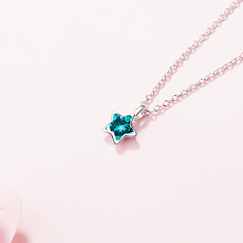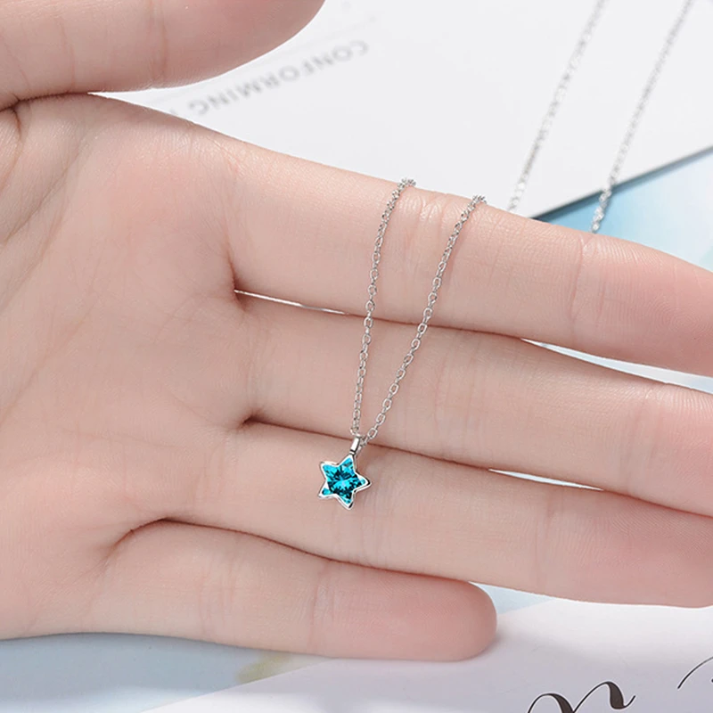 Name: Fashion Simple 925 Sterling Silver Star Necklace Material: Silver 925 Colour: Blue Size: 40+5cm Weight: 5g