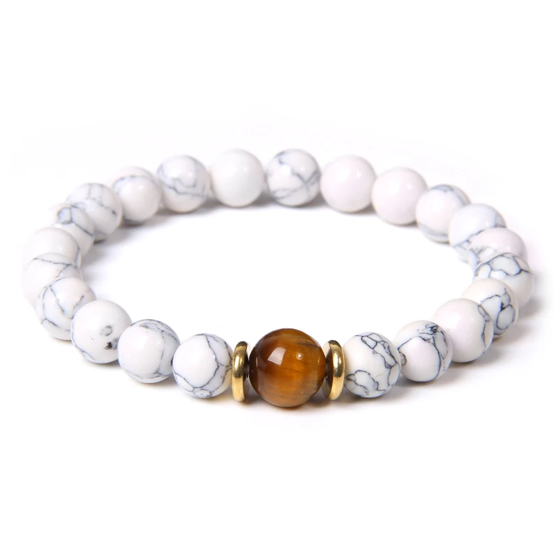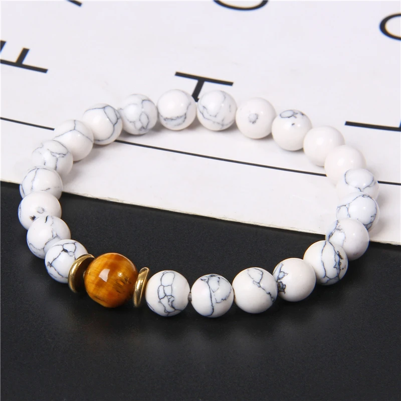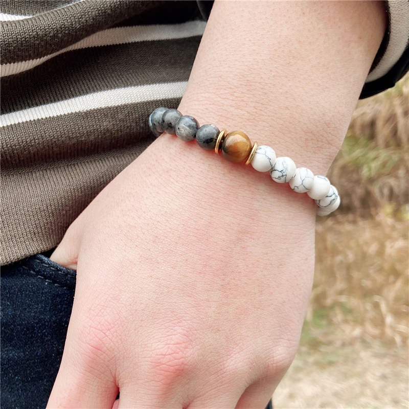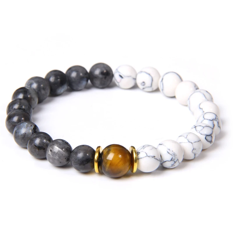 Модный мужской браслет из натурального круглого Лабрадорита с бусинами белый бирюзовый браслет Мала-Йога ювелирные изделия в стиле буддизма для женщин и мужчин