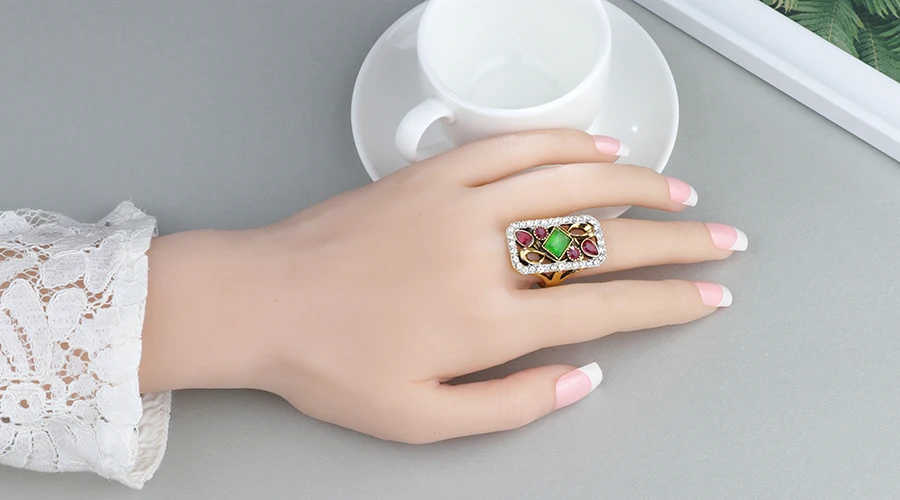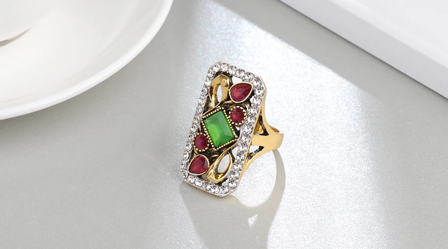 Gukin Горячая Мода винтажные зеленые большие свадебные кольца для женщин античное золото цвет мозаика белый кристалл Турция бижутерия подарок Любовь Наименование товара: модные мужские кольца Основной камень: с украшением в виде кристаллов Другое камень: с украшением в виде кристаллов Материал: золото Цвет Случаи: свидание/вечерние/Выпускной/подарок/День Святого Валентина
