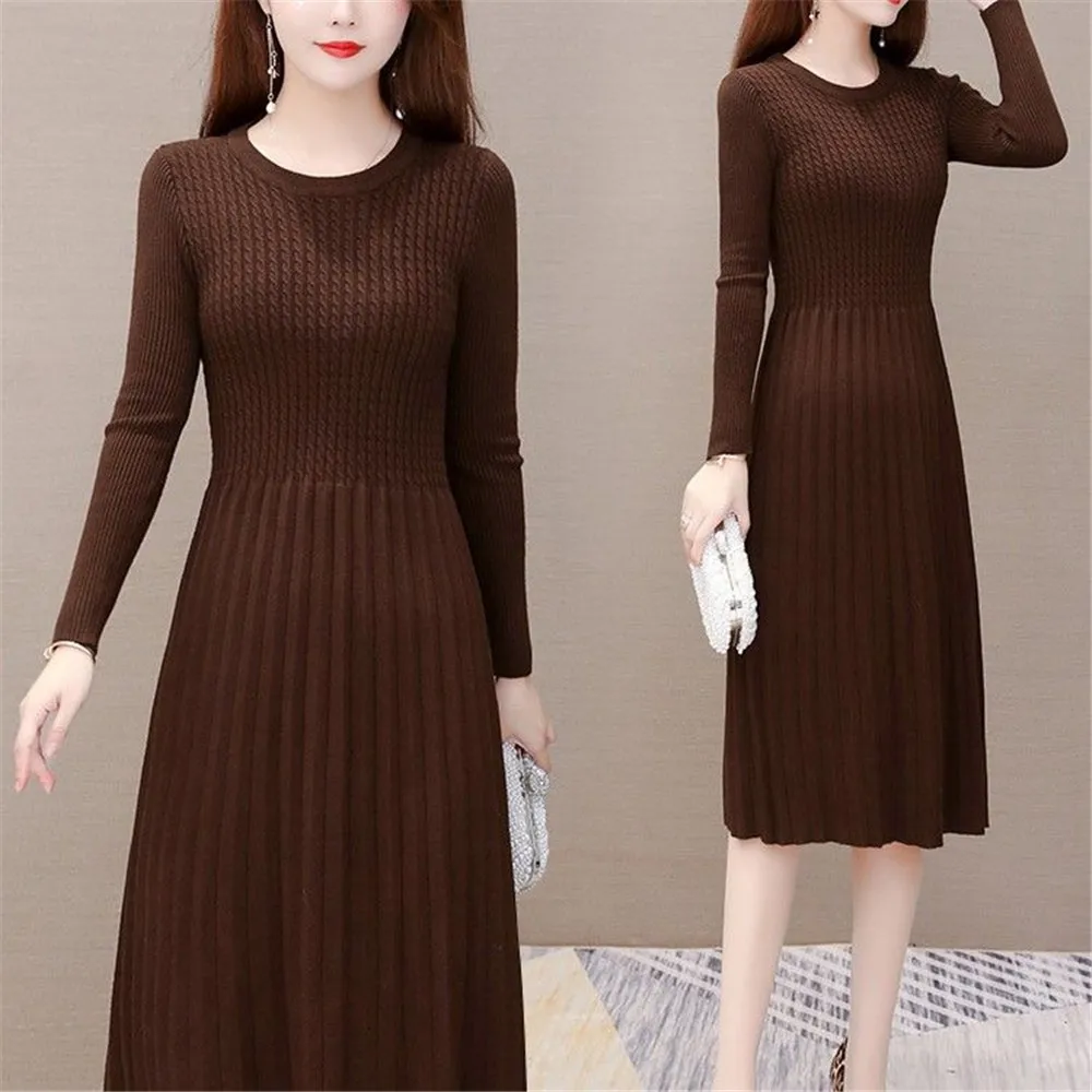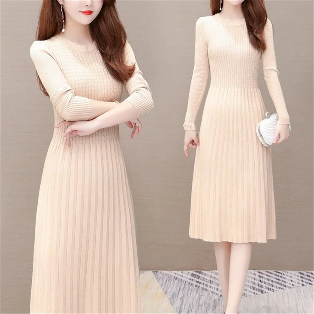 Женское платье-трапеция, повседневное черное вязаное платье-свитер, элегантные вечерние платья-миди размера плюс, весна-осень-зима, 35