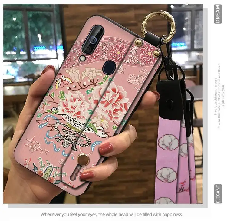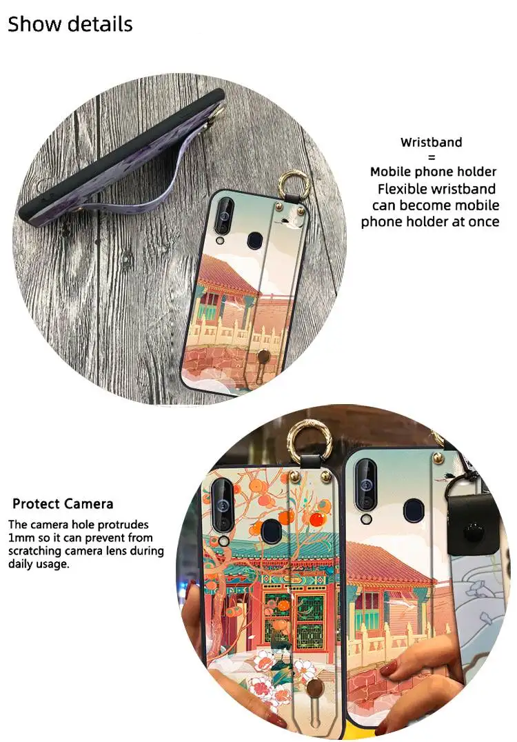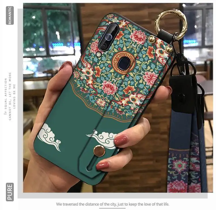 Silicone Lanyard Chinese Style Wrist Strap Phone Case For Samsung Galaxy M30 Waterproof Fashion Design Phone Holder Anti-knock