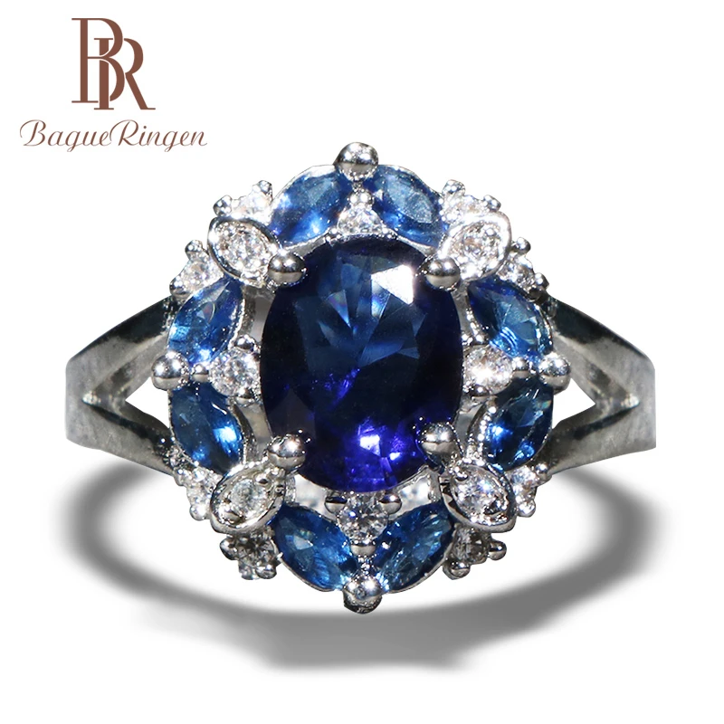 Женские Классические кольца Bague Ringen из стерлингового серебра 925 пробы с круглой формой, драгоценные камни-сапфиры, женские вечерние ювелирные изделия, оптовая продажа