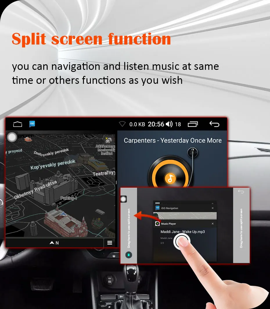 Это Радио имеет функцию разделения экрана, вы можете смотреть видео во время навигации, или делать другие две функции одновременно, как вы хотите.