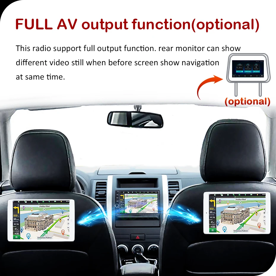 Это Радио имеет полную функцию выхода AV (опционально), эта функция дает много забавных детям и семье на заднем сиденье в долгом путешествии, они могут смотреть телевизор, фильмы, мультфильмы, смотрите видео на Youtube, мВ или другие видео