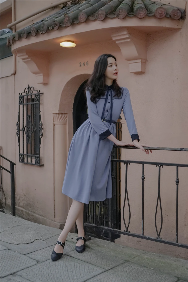 ● Название: винтажное платье ● Ткань: полиэстер ● Цвет: серо-синий ● Размер: S, M, L, XL ● Рекомендации по стирке: бережная ручная стирка