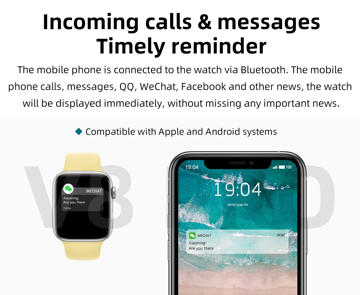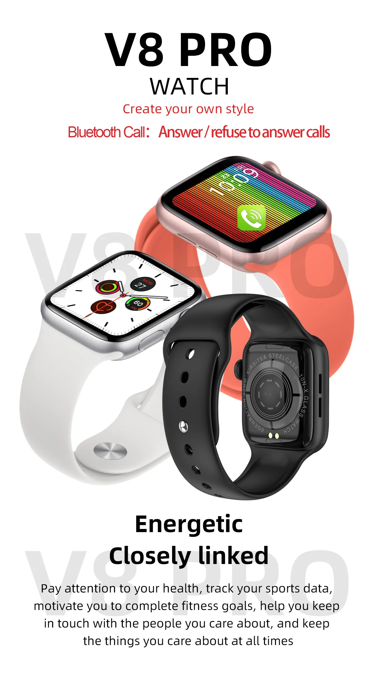 V8pro Смарт-часы 44 мм монитор сердечного ритма для мужчин и женщин браслет Bluetooth Вызов воспроизведения музыки Smartwatch для Apple iPhone Xiaomi huawei