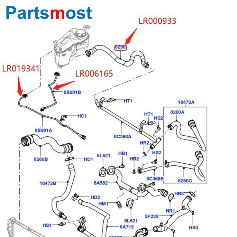 1 х шланг радиатораLR019341:-Двигатель для расширения бака