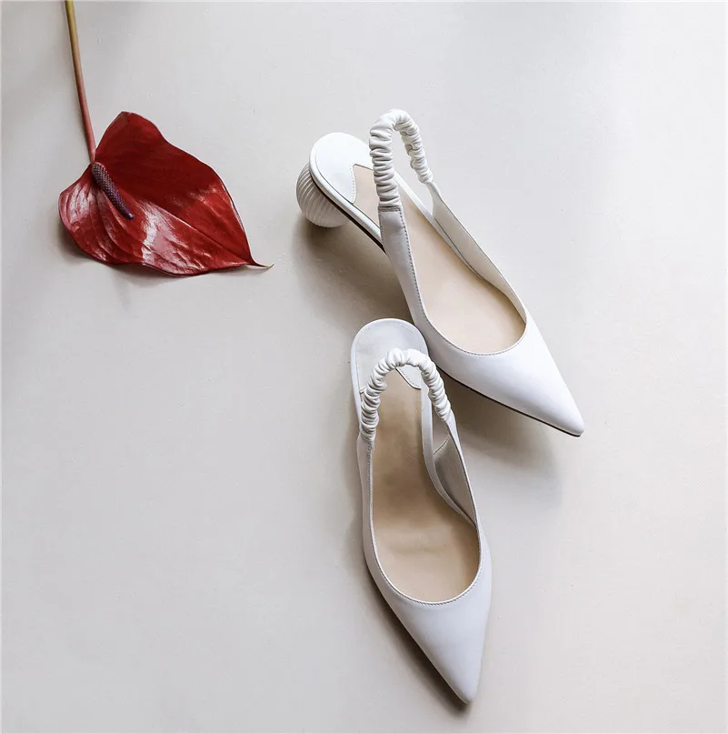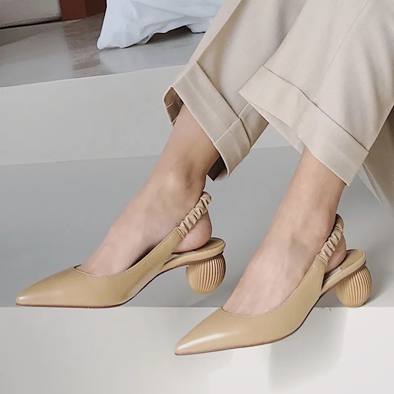 Meotina/женские туфли-лодочки на высоком каблуке; обувь из натуральной кожи на необычном каблуке; женские туфли с острым носком из натуральной кожи