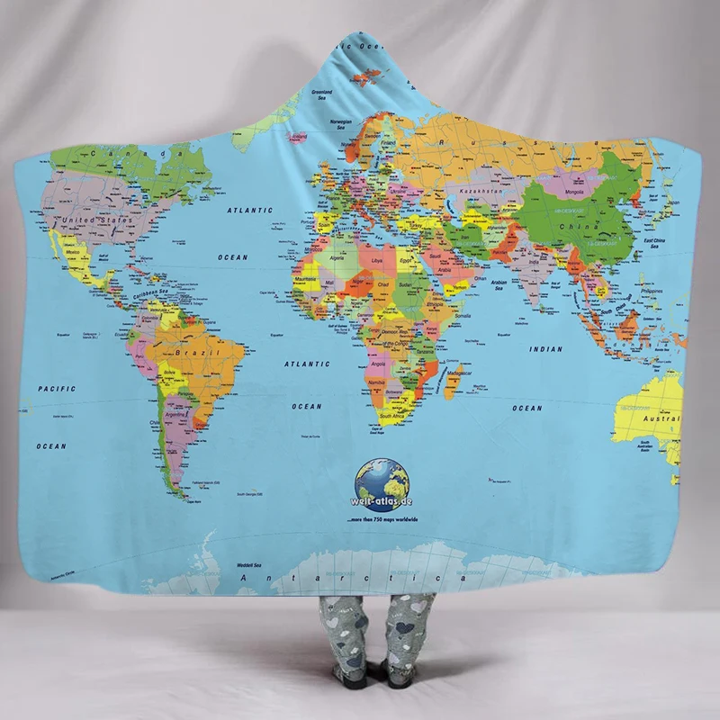 Карта мира, 3d принт, плюшевое моющееся одеяло с капюшоном для взрослых и детей, квилт для софы, пригодное для носки, Флисовое одеяло, сделай сам, для дома и офиса