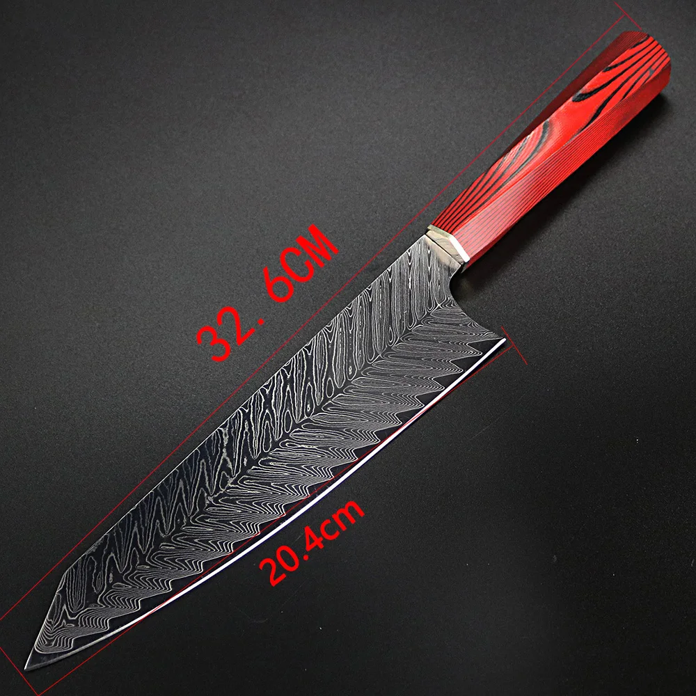 Руководство по эксплуатации Бренд: XUAN FENG Общая длина: 32,6 см Длина лезвия: 20,4 см Толщина лезвия: 4 мм Твердость: 59 HRC. Материал: VG10 Ручка: ручная, прочная, термостойкая, красивая деревянная ручка, каждая ручка уникальна. Особенности: острый и прочный; Супер-устойчивый к ржавчине; Светильник с энергией. Уровень остроты: Острая Бритва